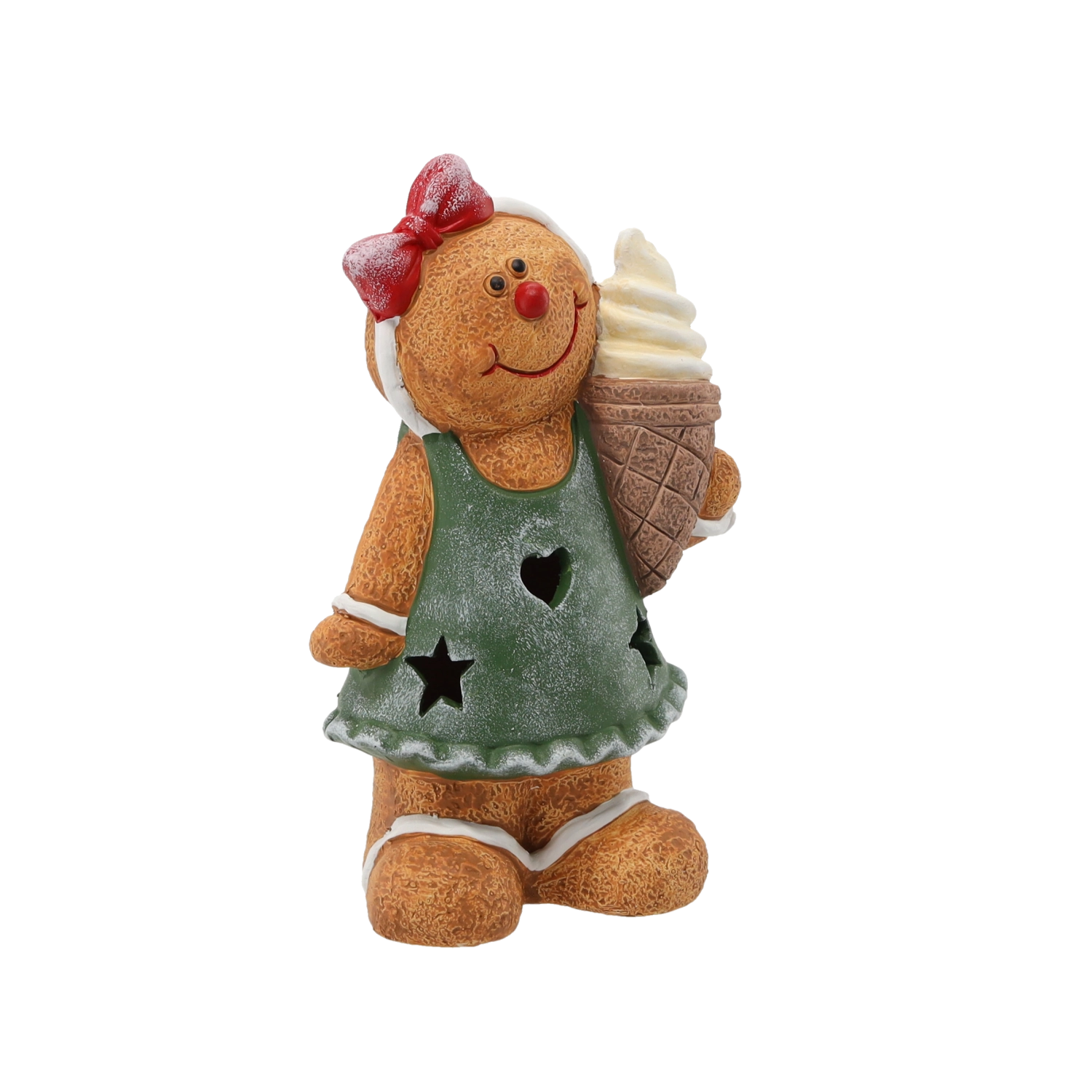 Skab en fortryllende adventsstemning derhjemme med den keramiske peberkagemandsfigur. Den integrerede LED-belysning fremhæver diskret dekorationens detaljer og giver rummet en varm glød. Med målene 14 × 10 × 23 cm er den ideel som enkeltstående pynt eller som del af en juleopsats.