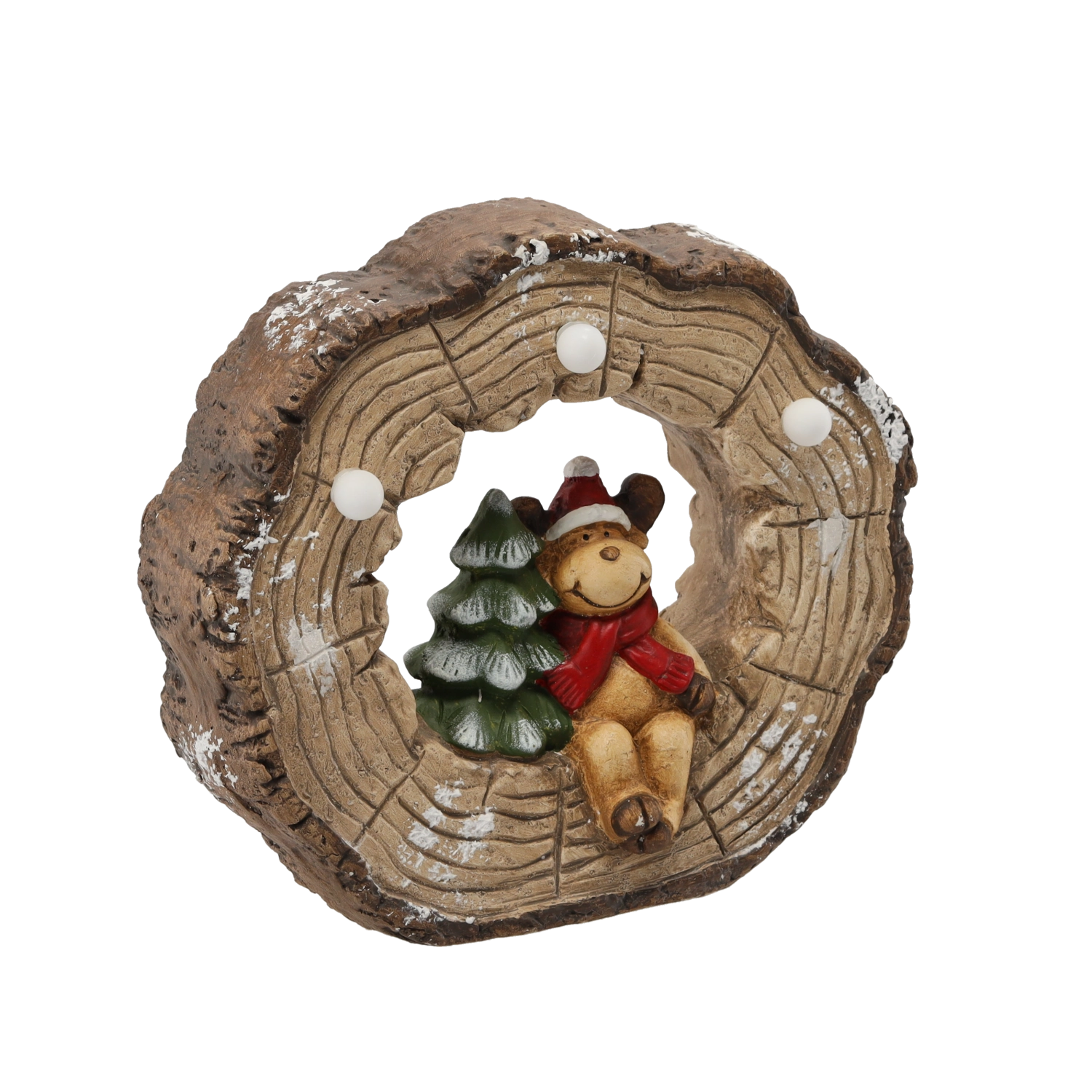 Denne julefigur med et rensdyr skjult i en træstubs hulning tilfører varme lysaccenter til enhver indretning. Det integrerede LED-lys skinner blidt gennem detaljerne i dekorationen og skaber en hyggelig, festlig atmosfære uden overophedning og med lavt energiforbrug.
