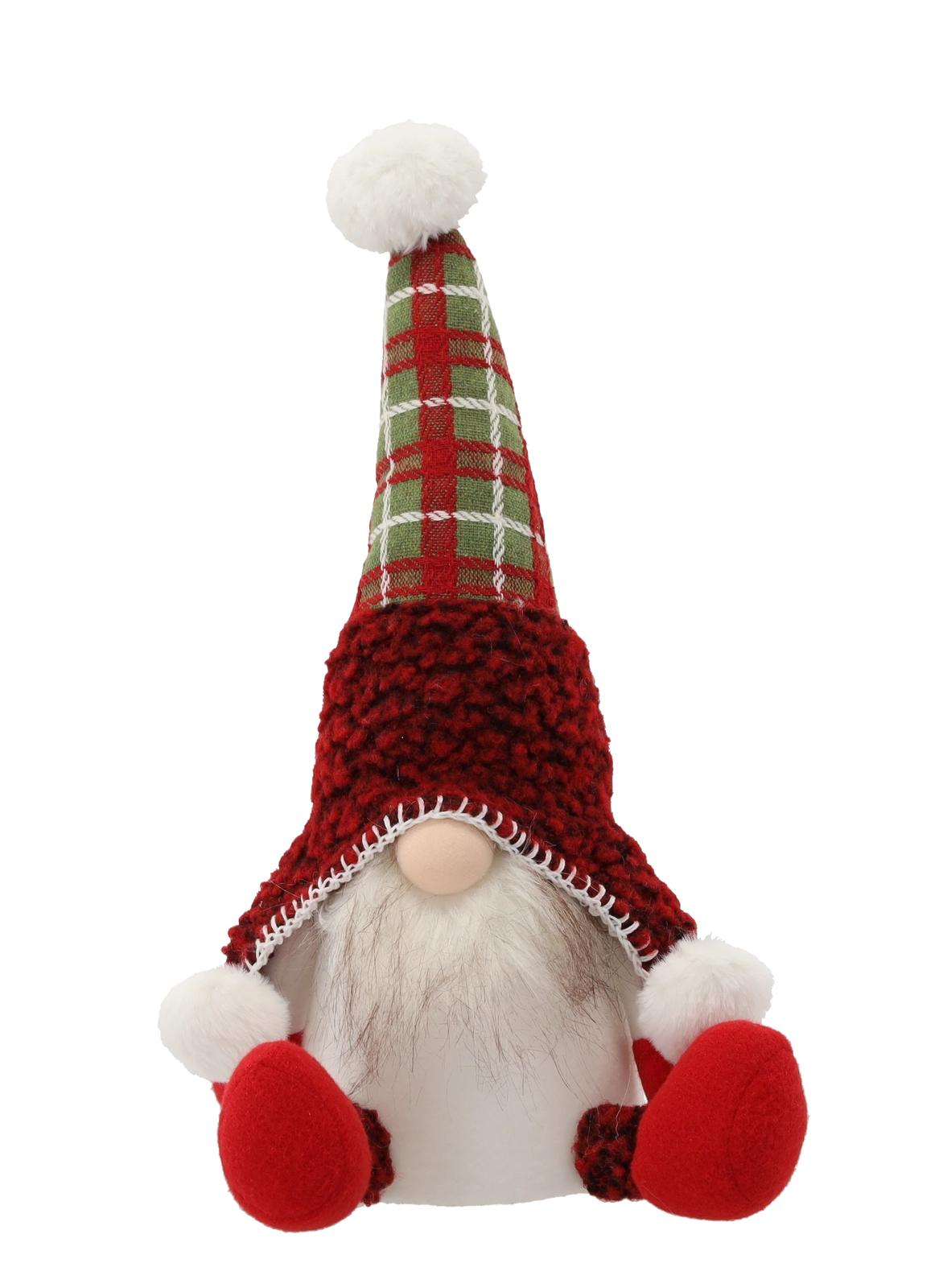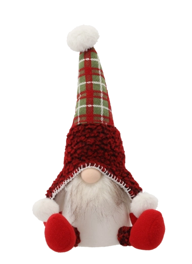 Plaid-mønstret hue, fyldigt skæg og bløde materialer giver dekorationen et tidløst udtryk. Passer perfekt på hylder, kommoder og kaminhylder.