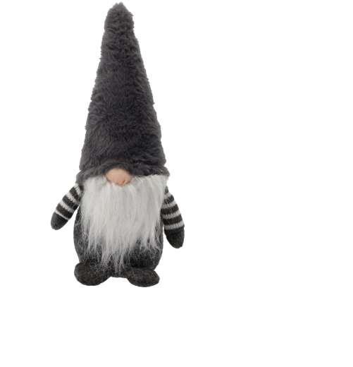 Pift din indretning op i juletiden med en stilfuld dekoration, der fanger blikket med det samme. Denne grå nisse med høj hue, stribede ærmer og langt hvidt fuldskæg virker både sød og elegant. De behagelige materialer skaber en afslappet, festlig stemning derhjemme og passer perfekt i både moderne og traditionel indretning.