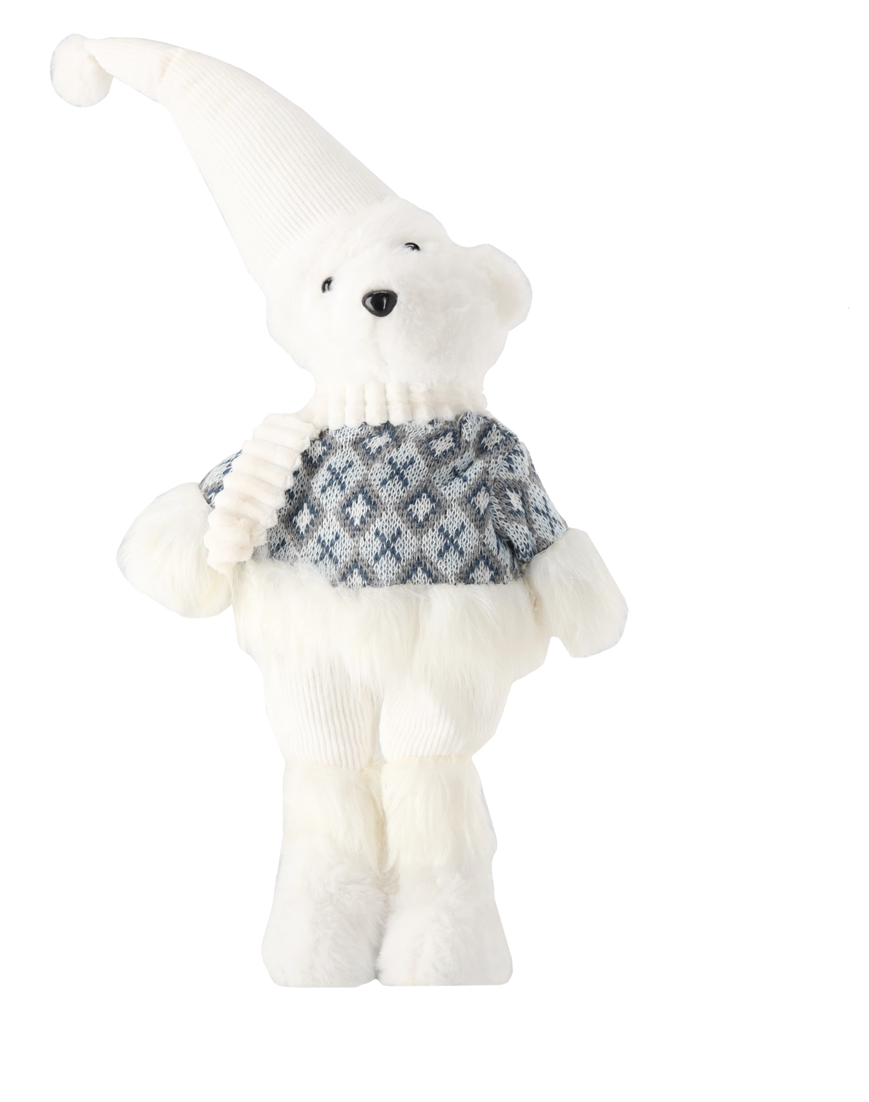 Bamsen imponerer med en superblød overflade, en lang spids hue og en mønstret sweater. Sikkert broderede detaljer giver et sødt og hyggeligt udtryk.