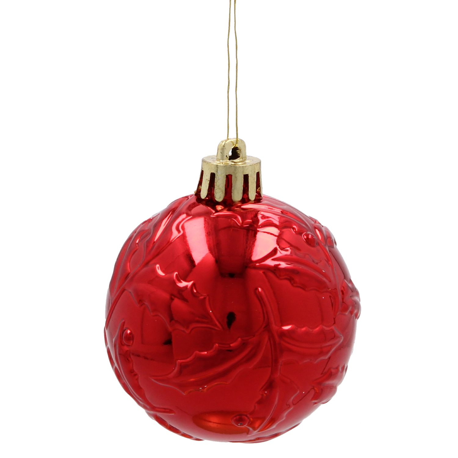 Røde dekorationer med fin relief eller glans understreger den traditionelle julestil og står smukt i kontrast til de grønne grene.