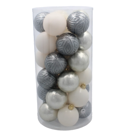 Med 30 styk pynt dækker du nemt hele træet i et sammenhængende tema. De forskellige overfladebehandlinger – matte, blanke og relief – skaber et spil af lys og tekstur, som løfter julestemningen til et højere niveau.