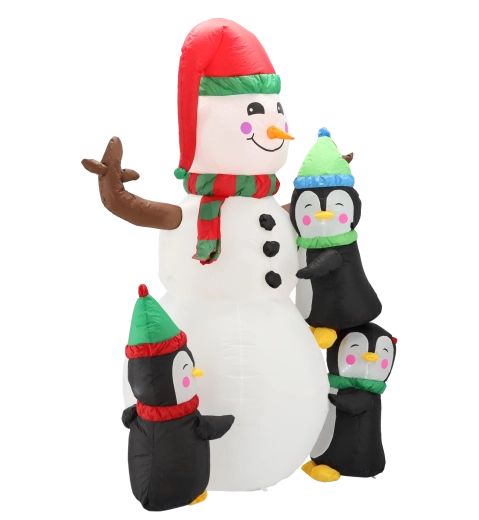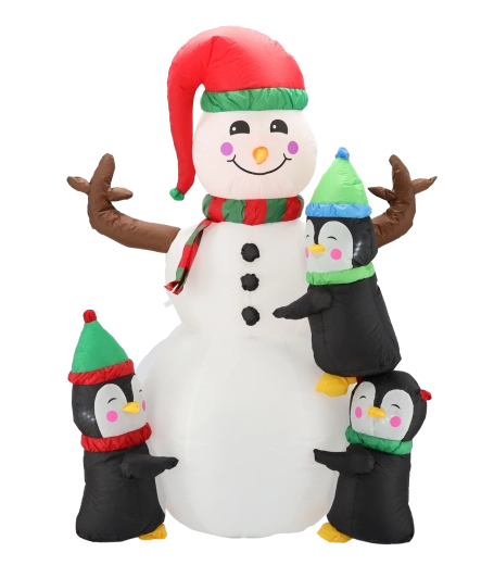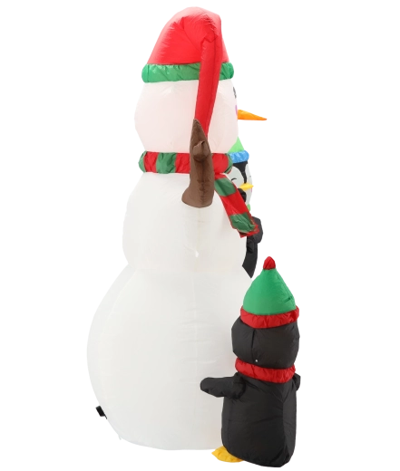 Denne muntre juledekoration bringer en varm atmosfære til dine vinterhøjtider. Den 190 cm høje snemand med nuttede pingviner og farvet LED-bagbelysning begejstrer både børn og voksne. Takket være den stille ventilator og de medfølgende forankringselementer opstiller du den nemt og sikkert på græsplænen, terrassen eller indendørs.