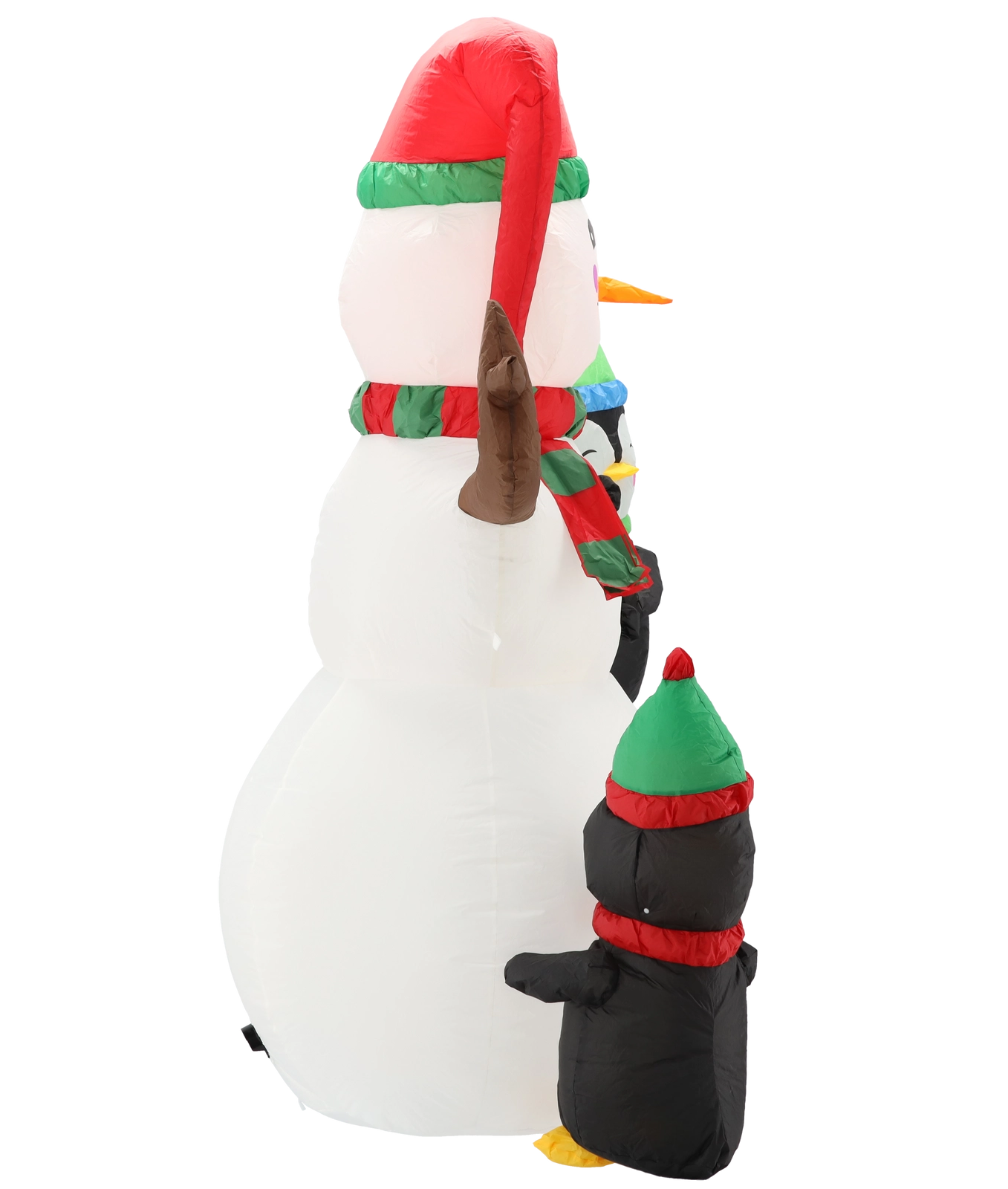 Fem integrerede LED (3 hvide + 2 farvede) oplyser smukt snemanden og pingvinerne, så dekorationen skiller sig ud selv i bælgmørke.