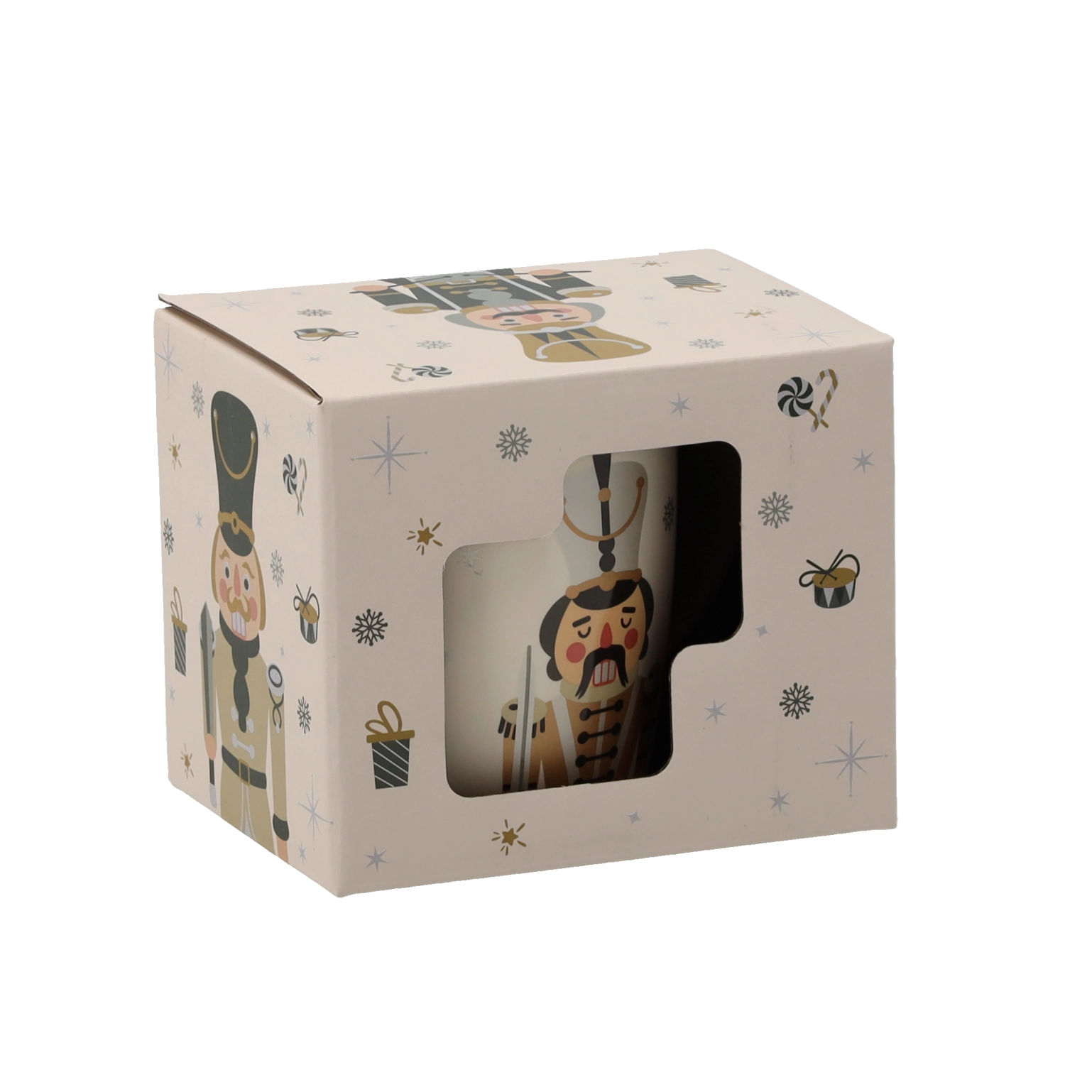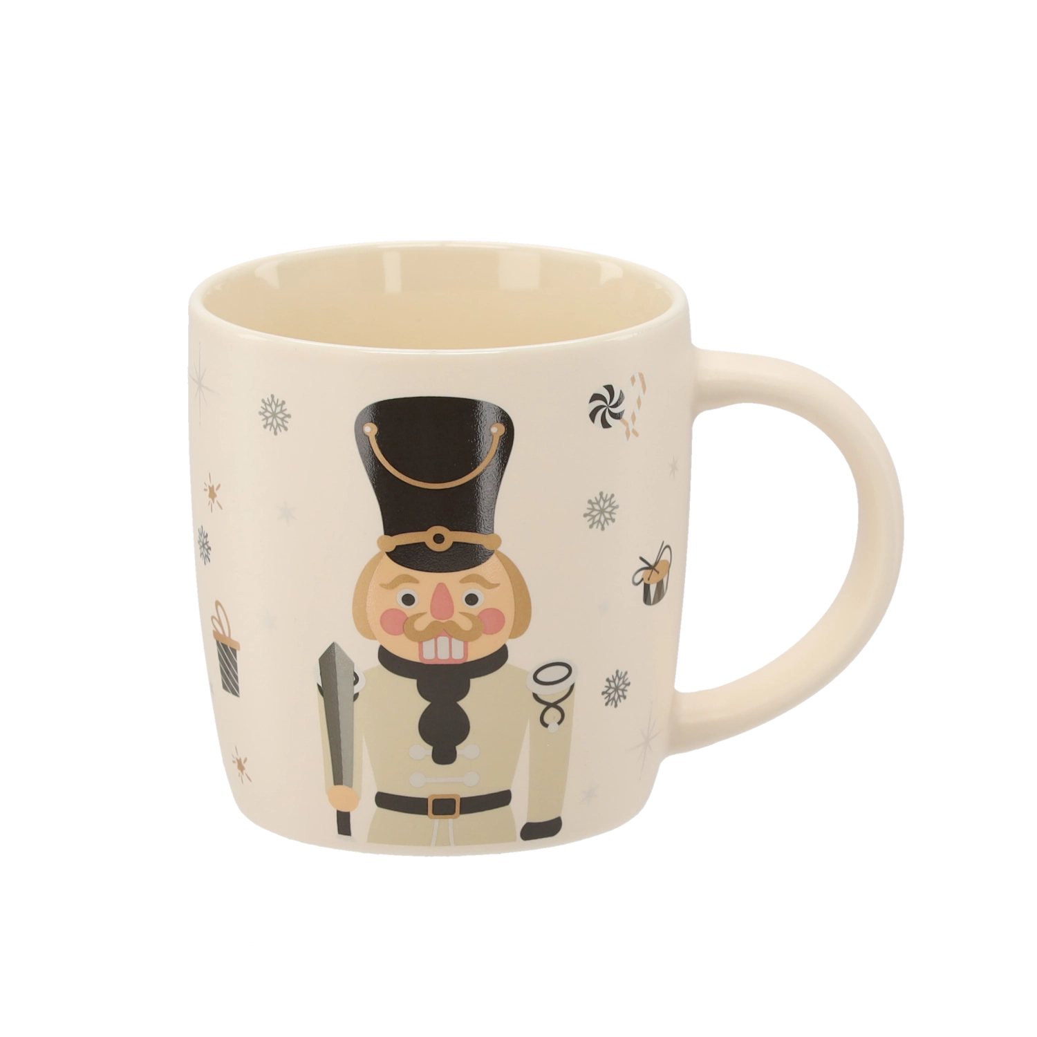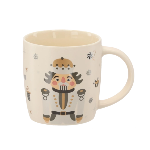 Bring en festlig stemning ind i dit hjem med et porcelænskrus på 365 ml. Den elegante beige bund suppleres af illustrationer af nøddeknækkeren, snefnug, gaver og søde sager. Kvalitetsporcelæn og en glat glasur sikrer lang holdbarhed og nem vedligeholdelse.