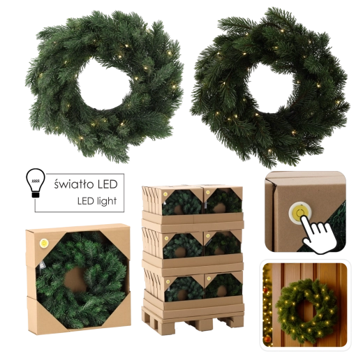 Kransen indeholder 30 mini-LED med behageligt varmt hvidt lys – det er bare at tænde og nyde den festlige glød uden besværlig installation.