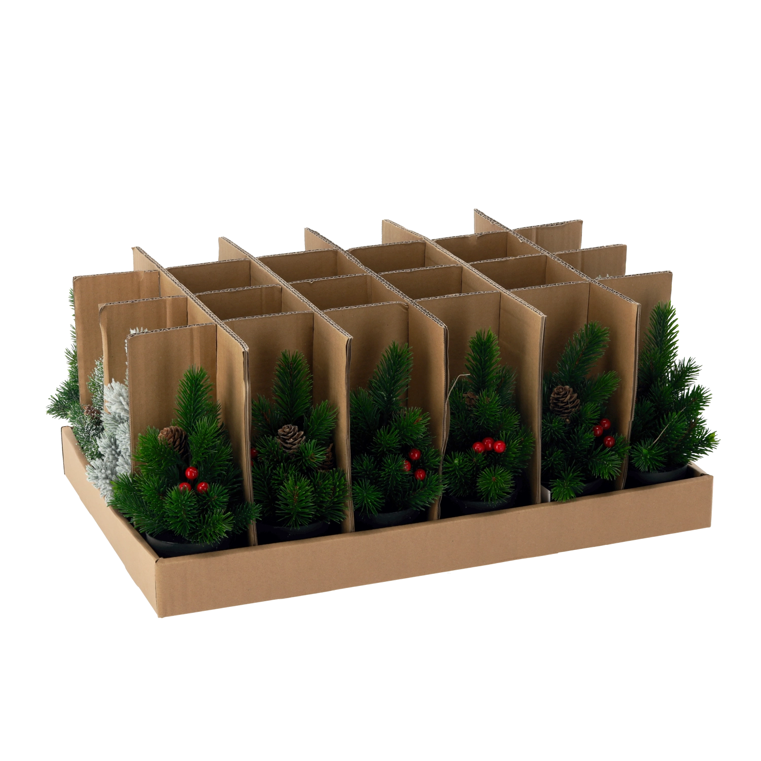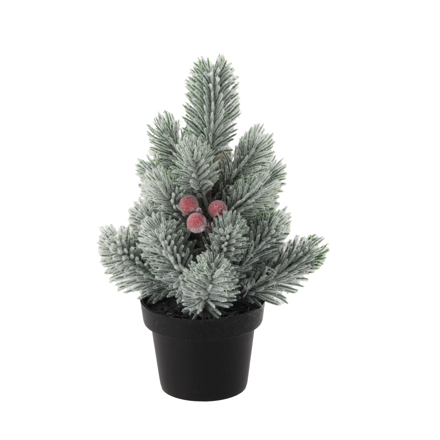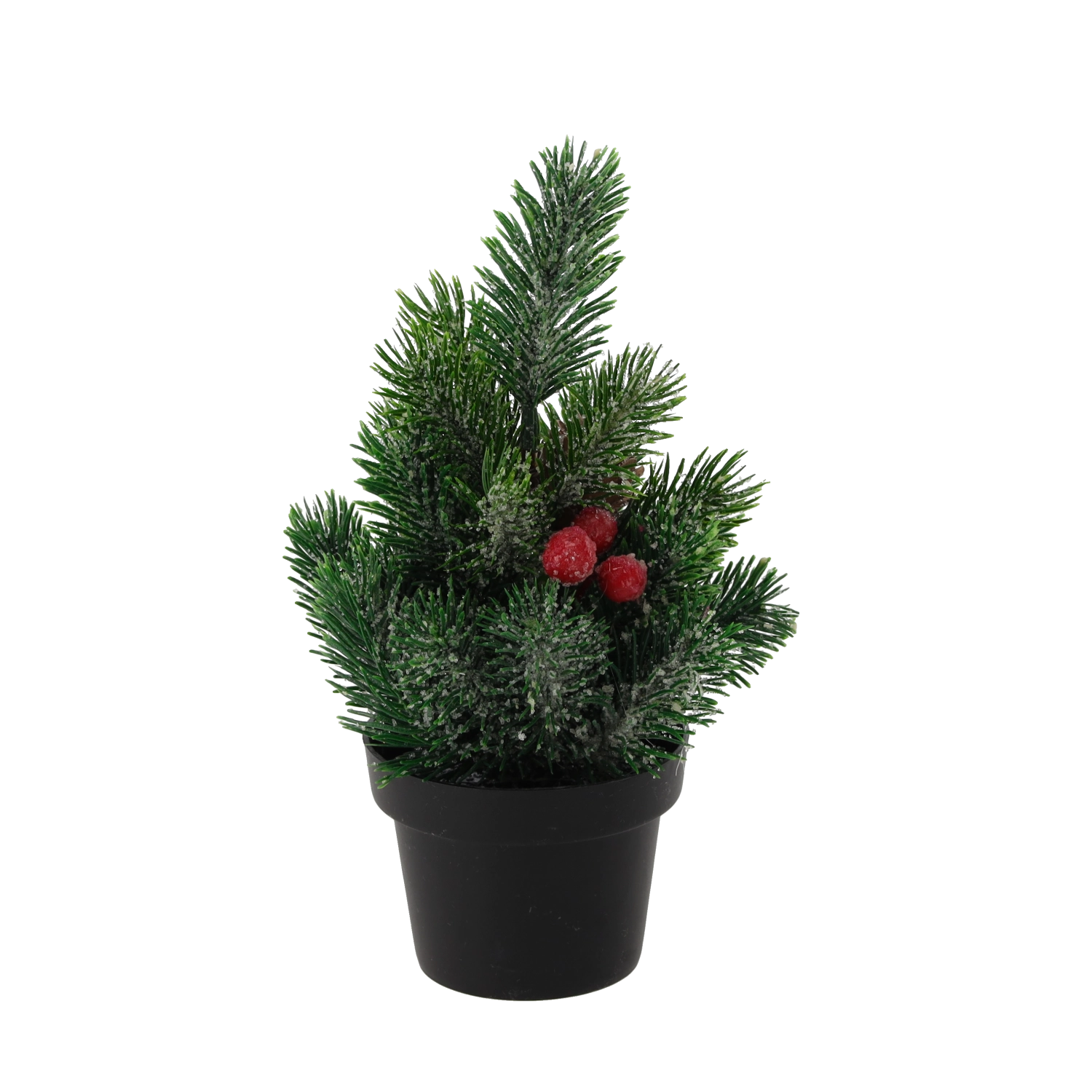 Gør dit hjem hyggeligt i højtiden med dette mini juletræ i potte, 21 cm højt. Takket være den kompakte størrelse er det ideelt til bord, hylde eller reception, har realistiske nåle, dekorative røde bær og kogler og er klar til øjeblikkelig udstilling uden vedligeholdelse.