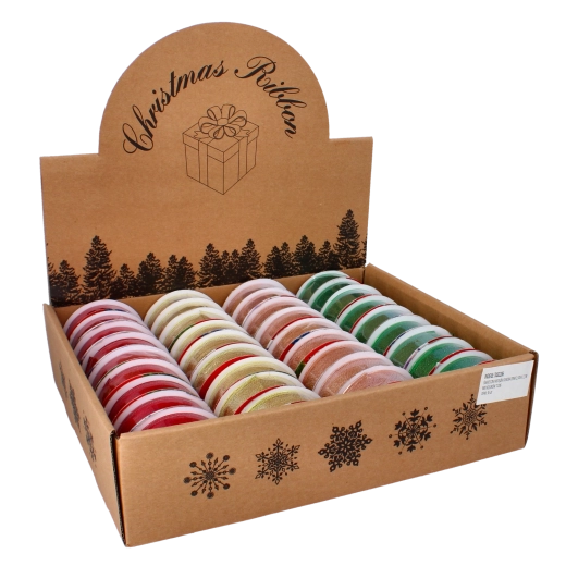 Elegant julebånd med en bredde på 2,5 cm og en længde på 2,7 m – ideelt til indpakning af gaver, pyntning af juletræer, kranse og lysestager. Takket være den satinske overflade og de faste kanter holder det formen perfekt, så du nemt kan lave elegante sløjfer og stabile dekorationer. Fås i et mix af farver med julemotiver for et gennemført, harmonisk udtryk i dine julearrangementer.