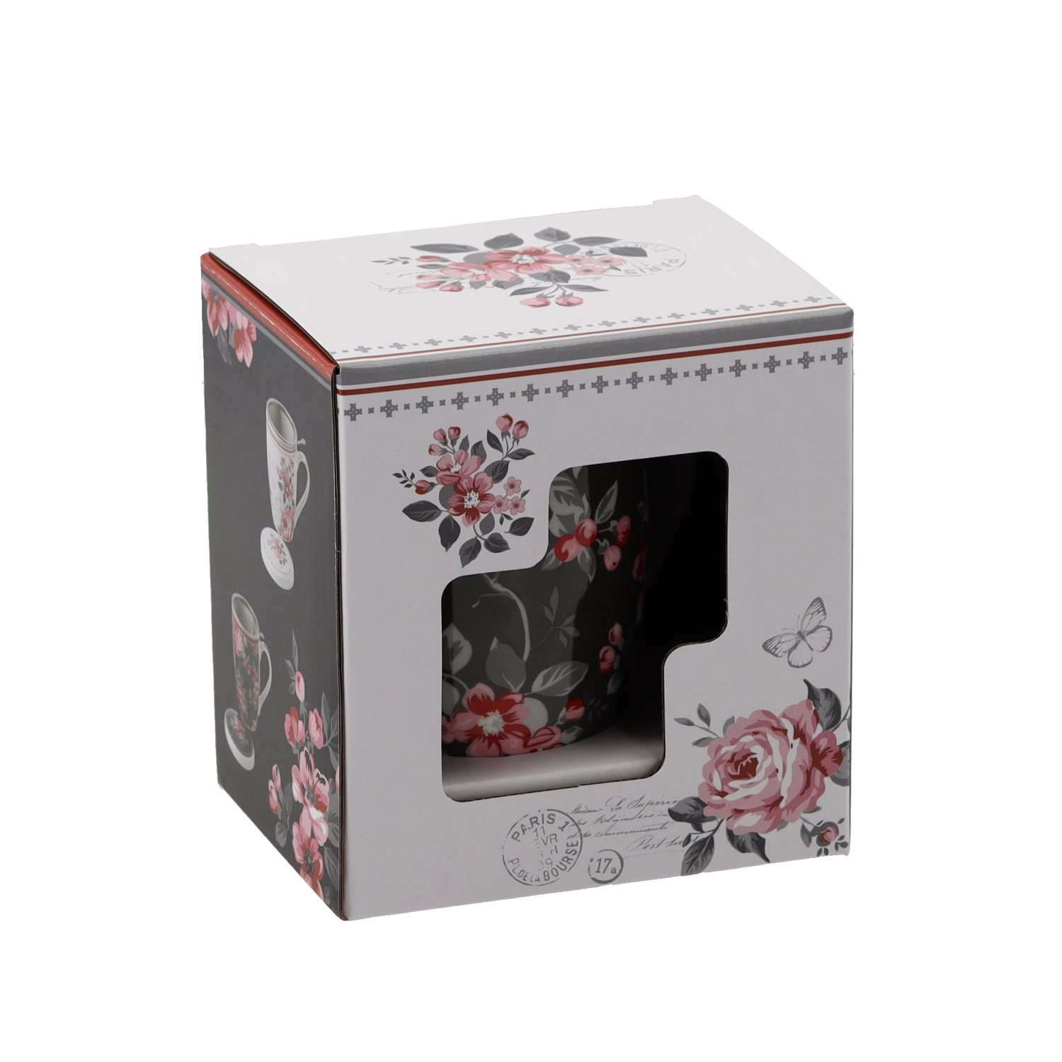 Koppen er fremstillet af kvalitetsporcelæn og prydes af et blomsterdekor i moderne udtryk. Med en kapacitet på 340 ml er den ideel til daglig nydelse af te, urteinfusioner og andre varme drikke. Et perfekt valg som stilfuld gave til teelskere.