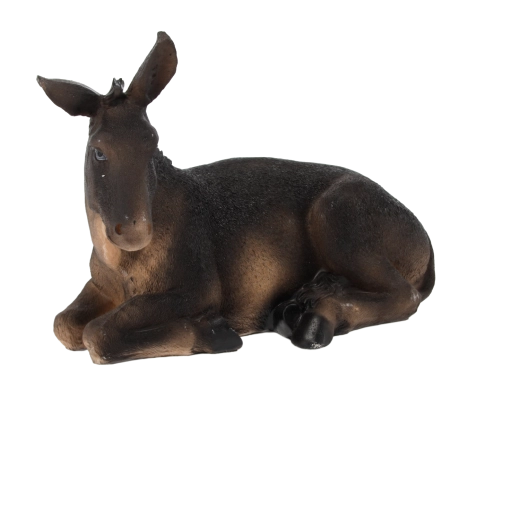 Det liggende æsel fuldender smukt scenen med Jesu fødsel og tilfører den festlige dekoration ro og autenticitet.