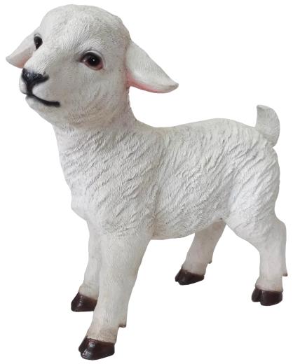 Denne dekorative fårefigur er designet som et realistisk, fritstående element til hjemme- og kirkekrybber, juledekorationer og tematiske udstillinger. Den præcise modellering med markant “ulds”-struktur, let tonede ører og mørke klove fremhæver det autentiske udtryk og understreger den traditionelle julestemning.