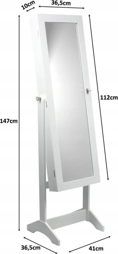 Hvid smykkeskab med spejl Grand 41,5 × 36,5 × 147 cm