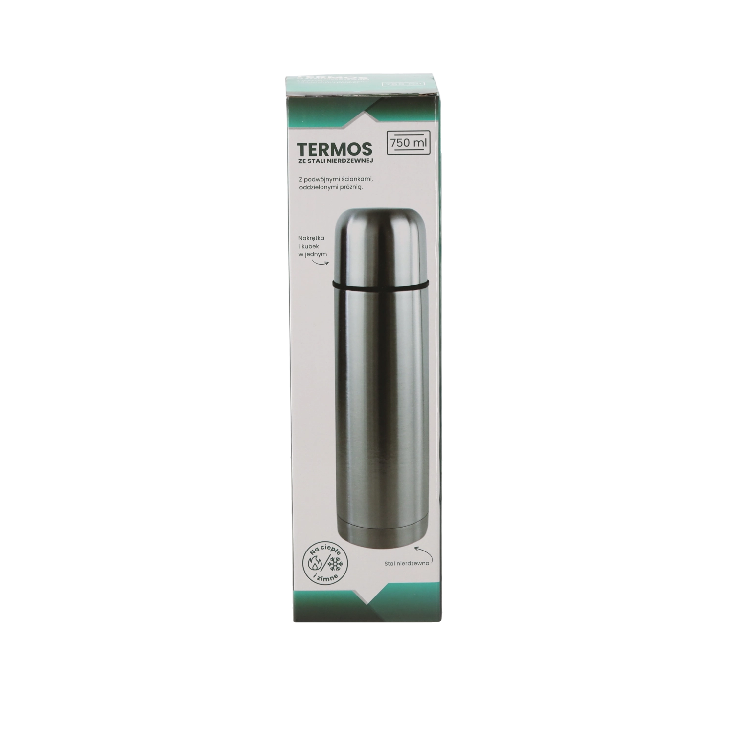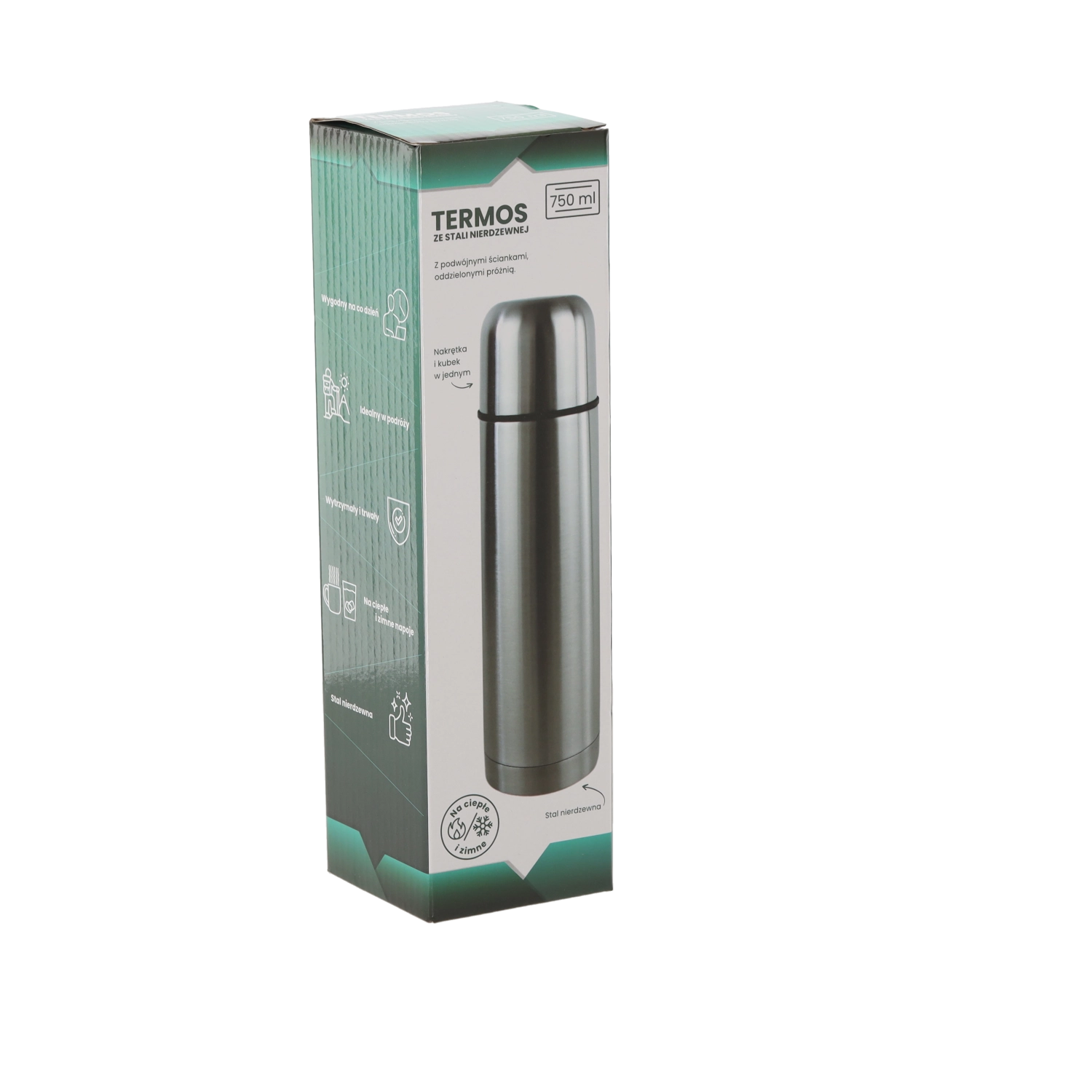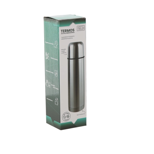 Praktisk termoflaske med et volumen på 750 ml og dobbeltvæg i rustfrit stål, som holder dine drikke varme eller kolde i lang tid. Den tilbyder fremragende varmeisolering – efter 24 timer er drikken stadig omkring 40–43 °C. Den ergonomiske størrelse og den høje kvalitet sikrer holdbarhed og behagelig brug derhjemme, på arbejde og på farten.