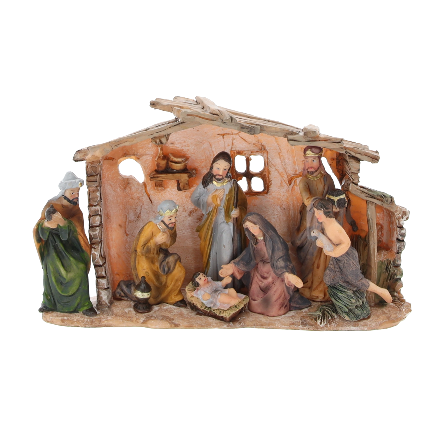 Bring julens magi hjem med en elegant julekrybbe, der viser den hellige familie, hyrderne og de tre vise mænd under en rustik stald. Figurerne er detaljerede og håndmalede for et unikt udtryk. De kompakte mål gør denne dekoration til en ideel julepynt til kommode, hylde eller kaminhylde. Holdbar polyresin sikrer lang levetid og et smukt udseende år efter år.