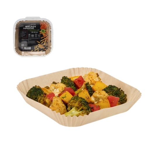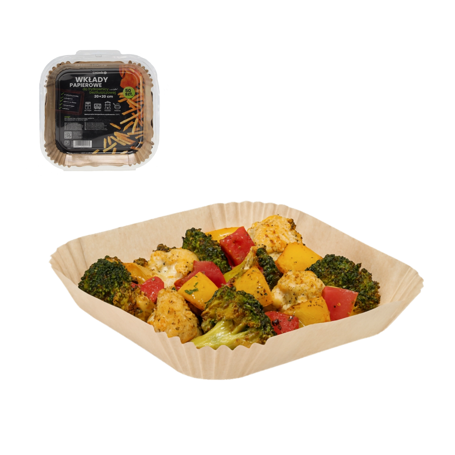 Indsatserne er lavet af ubleget papir i naturlig brun farve, er sikre til kontakt med fødevarer (certificeret FDA, LFGB, FSC) og er designet til alsidig brug: airfryer, mikrobølgeovn, dampkogning og stegning på pande.
