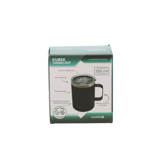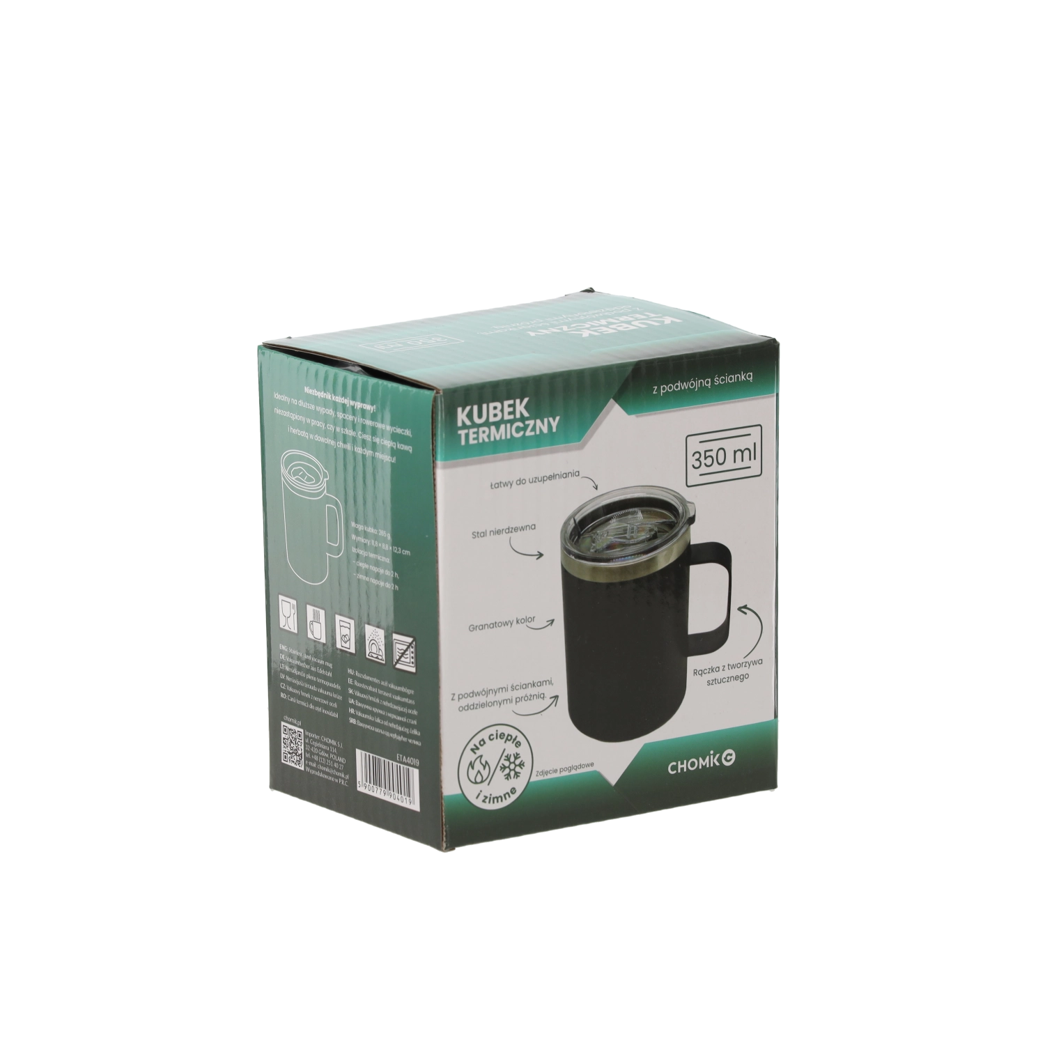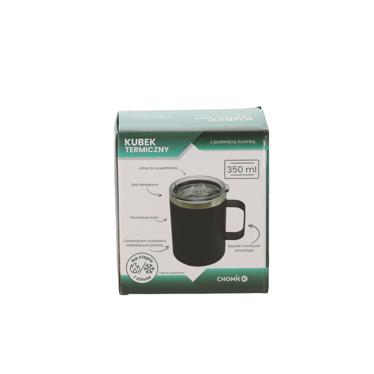 Praktisk termokrus med hank med en kapacitet på 350 ml holder din drik længere ved den ideelle temperatur takket være dobbeltvægget vakuumisolation. Robust rustfrit stål med pulverlakeret finish i en elegant granatæblefarve, låg uden gevind for hurtig åbning og mulighed for opvask i opvaskemaskine for nem vedligeholdelse.