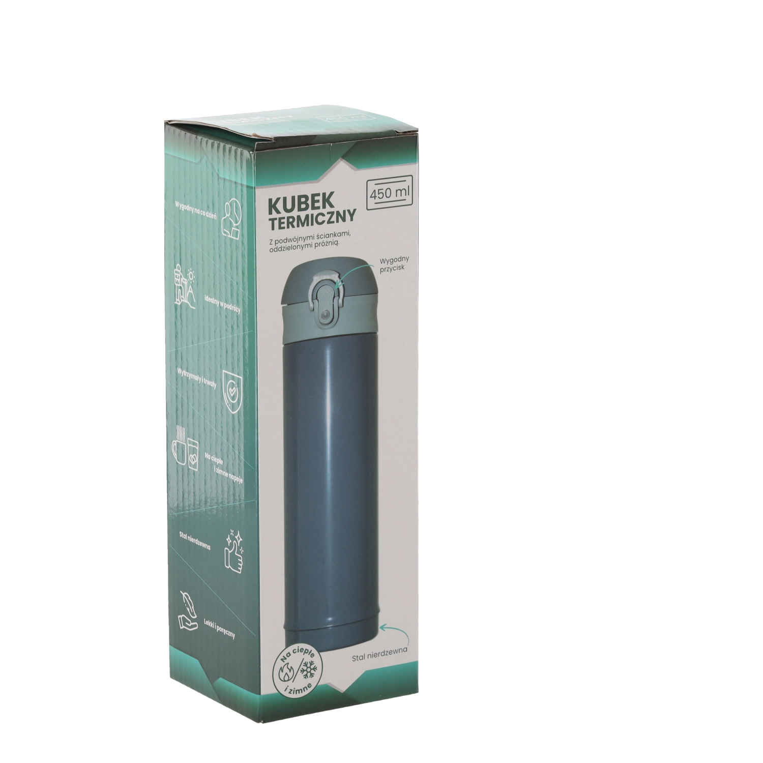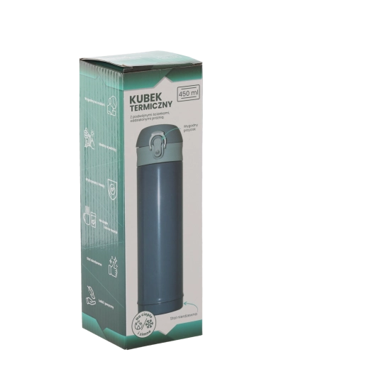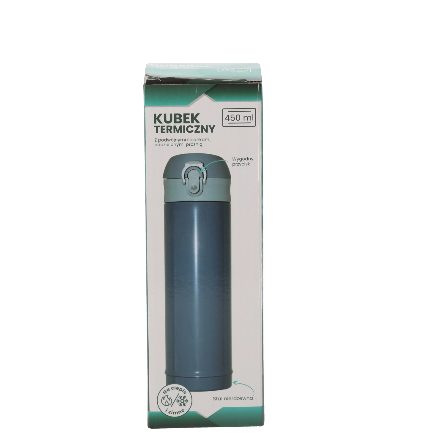 Stilfuld rejsetermokrus med en kapacitet på 450 ml holder dine drikkevarer varme eller kolde i op til 6 timer. Takket være den dobbeltvæggede vakuumkonstruktion i rustfrit stål og et sikkert låg med push-mekanisme er den ideel til rejser, arbejde og bil. Let, robust og lækagesikkert mod uønskede dryp.
