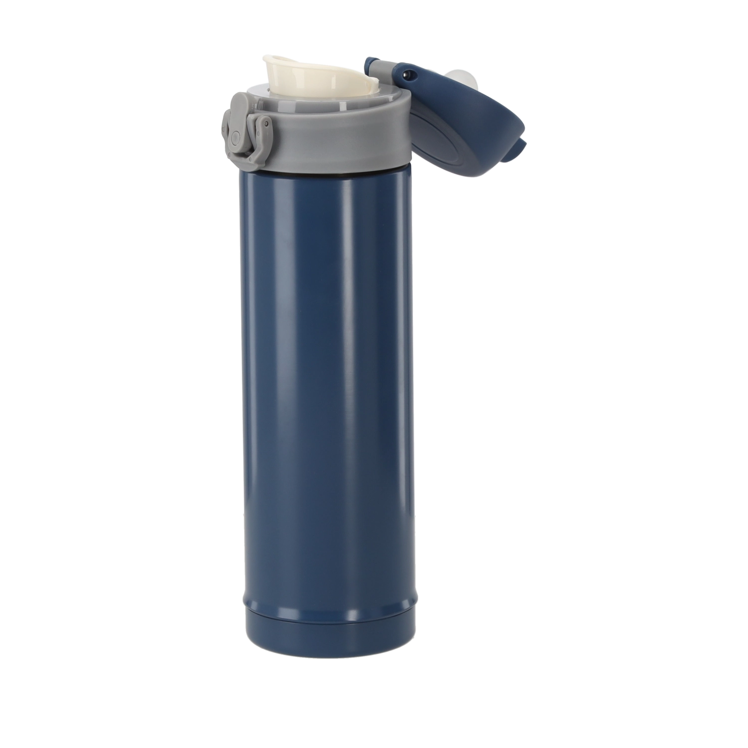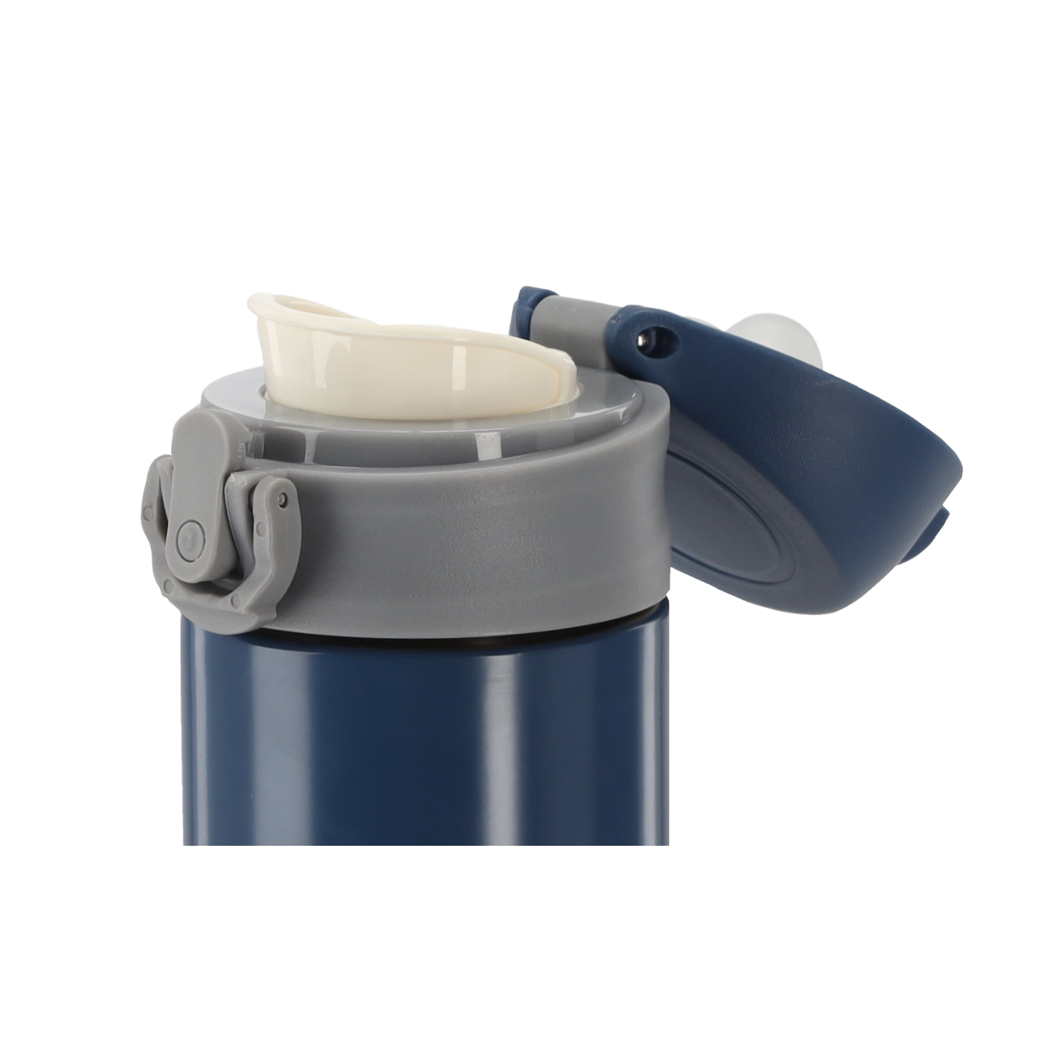 Push-låg i slidstærk PP-plast muliggør komfortabel betjening med én hånd og reducerer spild under gang eller kørsel. Takket være den slanke form (Ø 6,5 cm) passer den i de fleste kopholdere i bilen og i rygsækken.