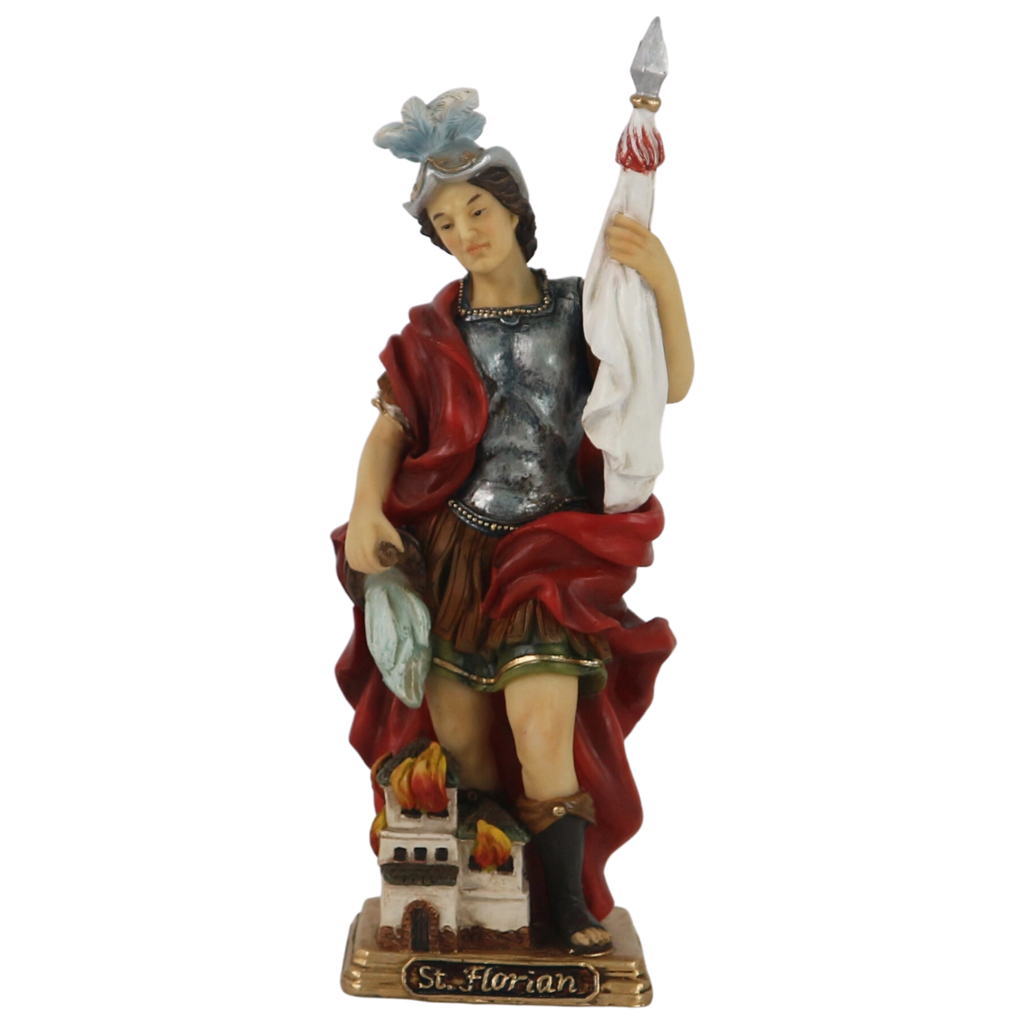 Denne detaljeret udførte figur af Skt. Florian forener åndelig symbolik med høj kvalitet. Realistiske træk, den markante kappe og de malede detaljer fremhæver hans beskyttende rolle mod ild, så den passer glimrende både indendørs og udendørs.