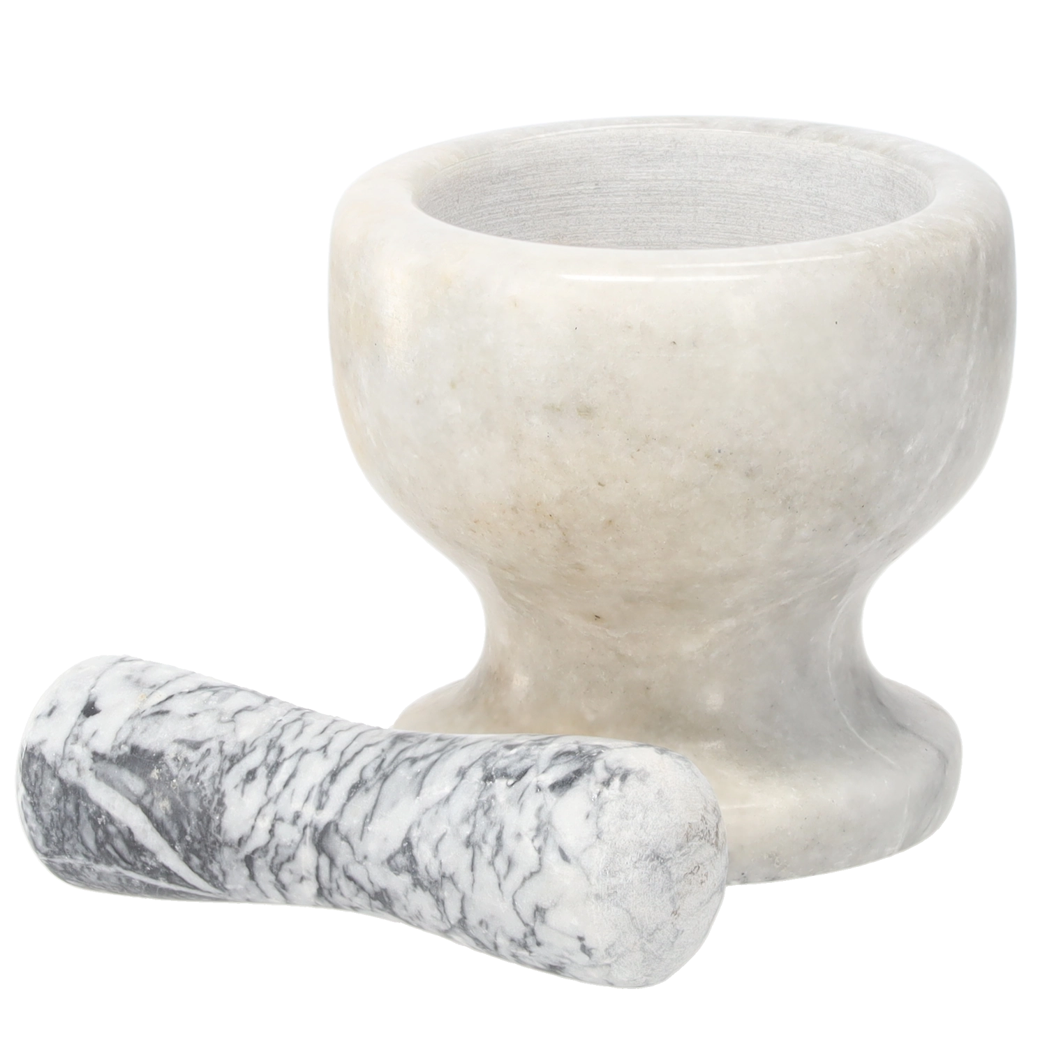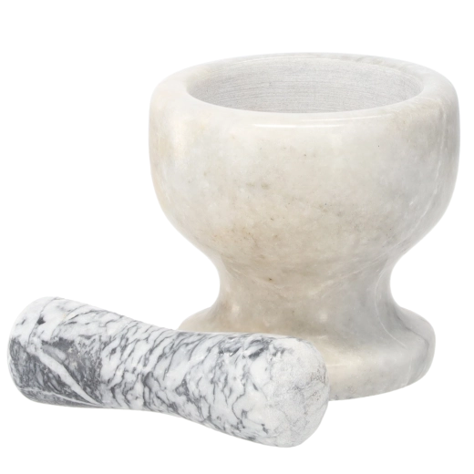 Elegant og holdbar marmormorter i hvid er ideel til manuel knusning af urter, krydderier og hårdere råvarer. Naturlig marmor sikrer høj stabilitet, lang levetid og nem rengøring. Mål: 12,5 × 12,5 cm.