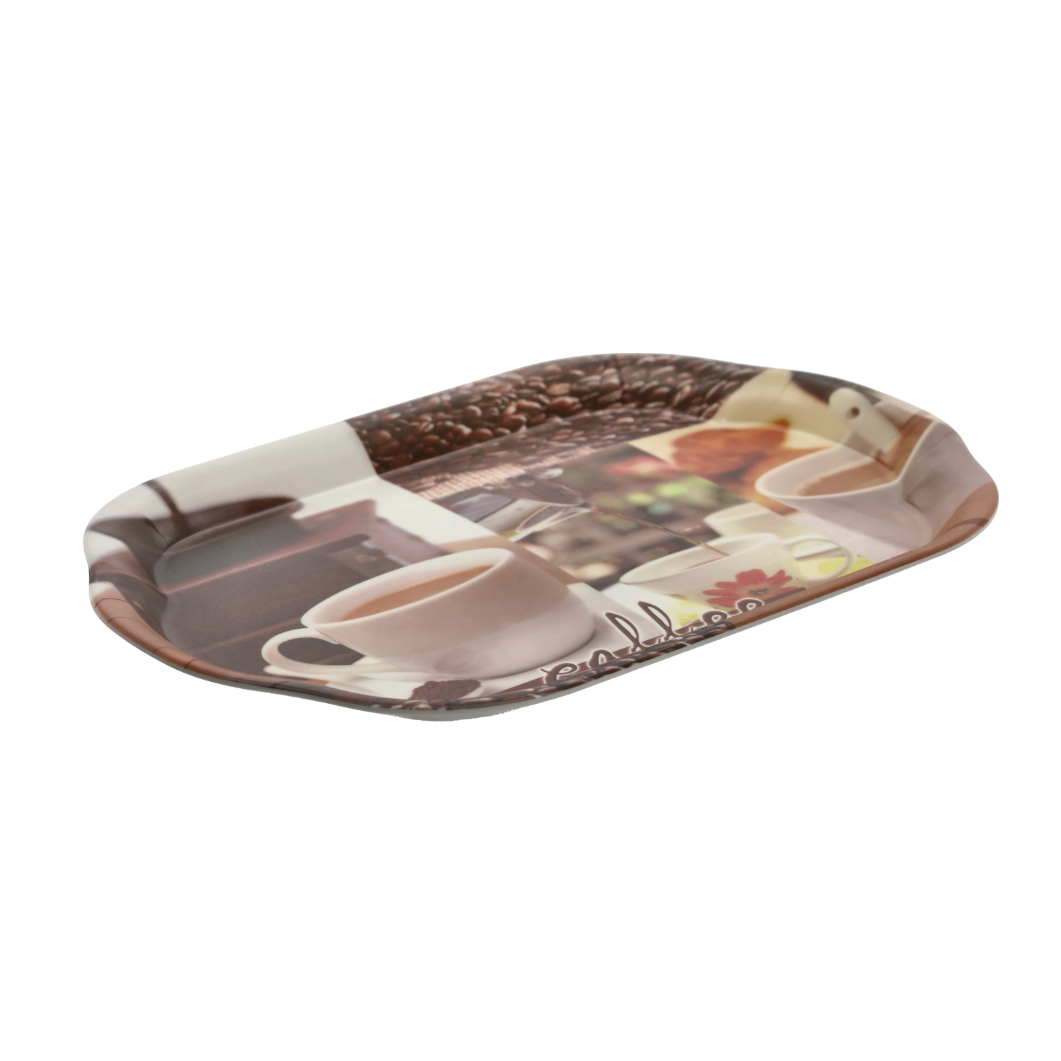 Takket være den forhøjede kant hjælper den med at forhindre, at krus, glas og tallerkener glider. Målene 45,5 × 31,5 cm giver rigelig plads til servering af kaffe, desserter eller morgenmad på sengen.