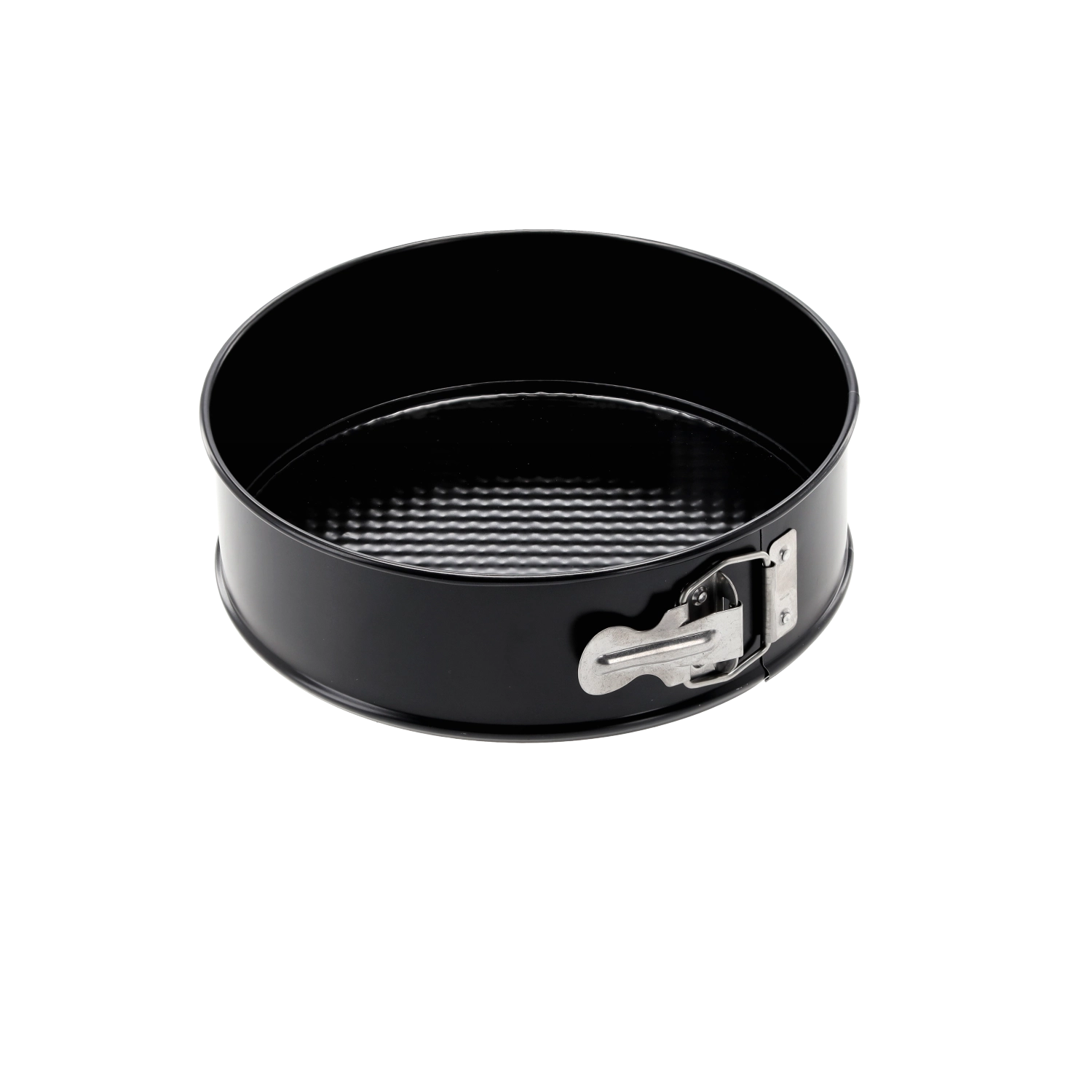 Praktisk rund springform med en diameter på 21 cm fra SNB, ideel til kager, tærter og cheesecakes. Takket være det aftagelige bundstykke og den solide lås kan du nemt tage det færdigbagte bagværk ud uden at beskadige det. Den kvalitetsrige kulstofstål sikrer jævn varmefordeling, mens nonstick-belægningen og den texturede bund hjælper med perfekt bagning og nem rengøring.