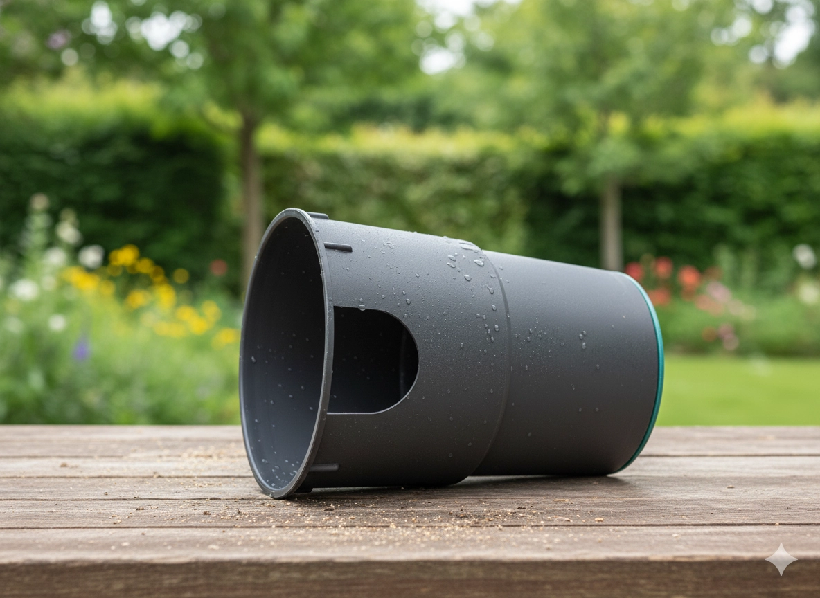 Den robuste konstruktion af langtidsholdbar plast modstår fugt, snavs og mekanisk belastning. Den gennemtænkte form med udskæring til rørføring og stabil base gør både montering og efterfølgende vedligehold lettere.