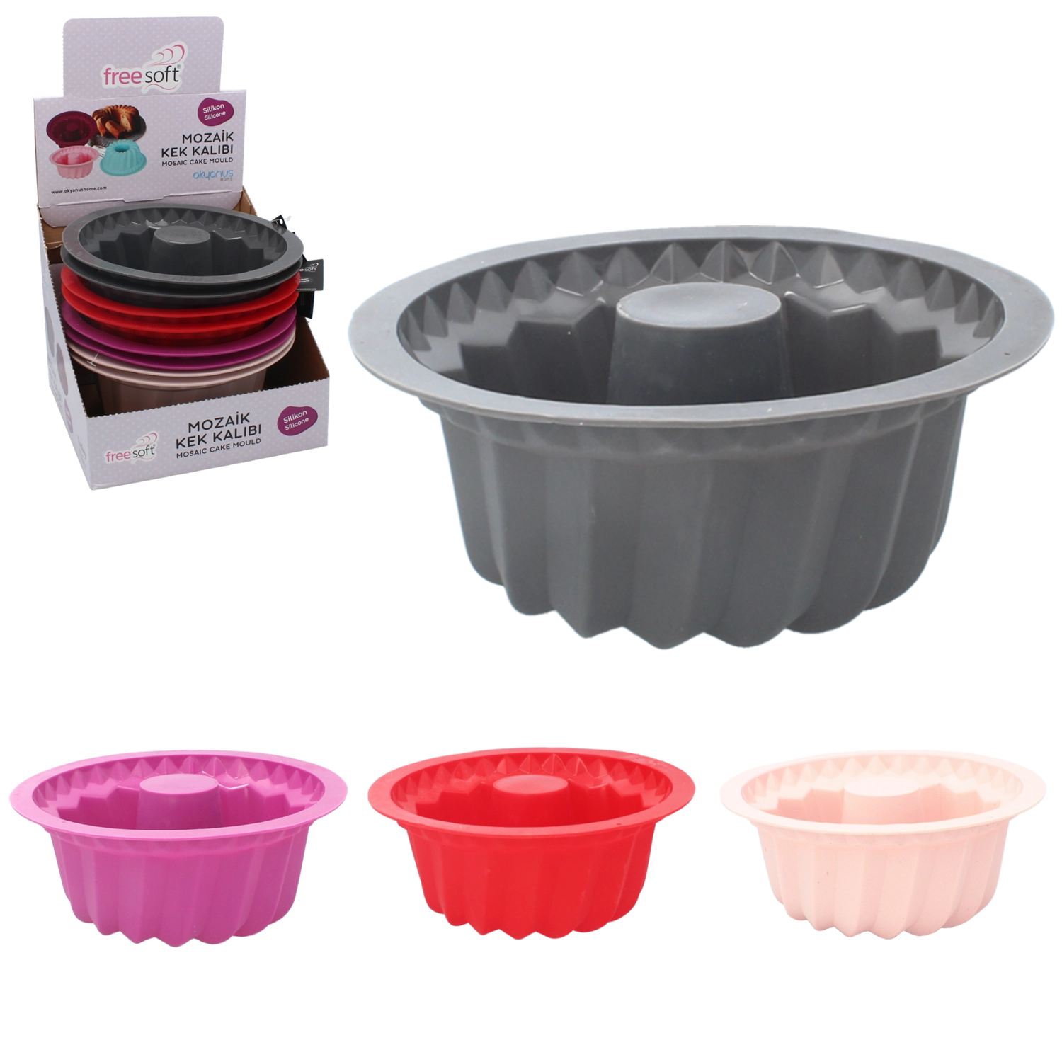Denne silikoneform til bundt-kage er et ideelt valg til hjemmebagte desserter. Takket være silikone af høj kvalitet er den let, fleksibel og holdbar, hvilket gør håndtering og udløsning nemmere. Den non-stick overflade garanterer et rent resultat uden indsmøring og udstøvning, mens den riflede form skaber et attraktivt ringdesign.