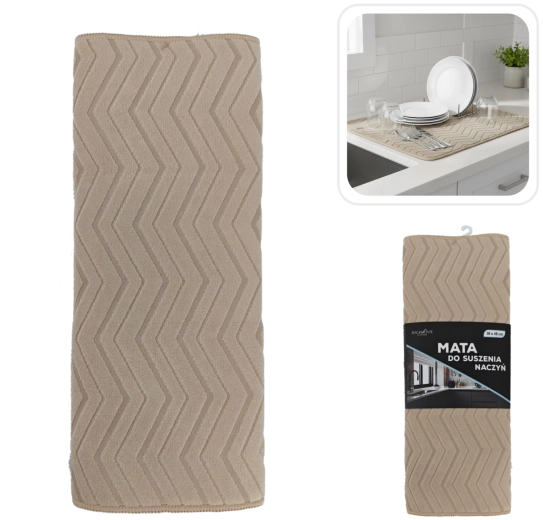En praktisk tørremåtte i størrelsen 38 × 48 cm lavet af kvalitets polyester-mikrofiber, som fremskynder tørringen af service og beskytter bordpladen mod dråber. Takket være sin høje sugeevne og bløde struktur er den ideel til skrøbelige glas og porcelæn, og den minimerer ridser og risikoen for brud. Nem vedligeholdelse – måtten kan maskinvaskes ved op til 30 °C og kan nemt foldes sammen efter brug takket være de kompakte mål.