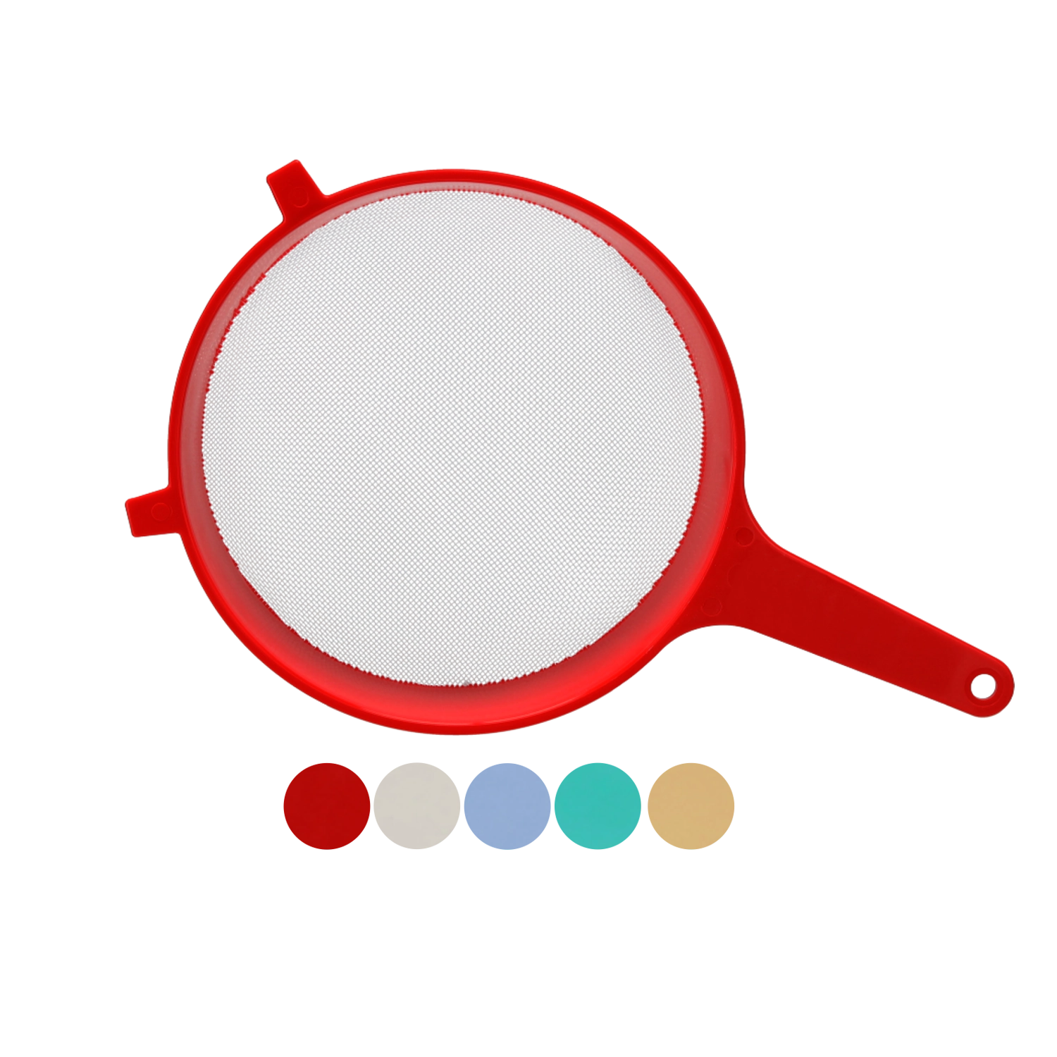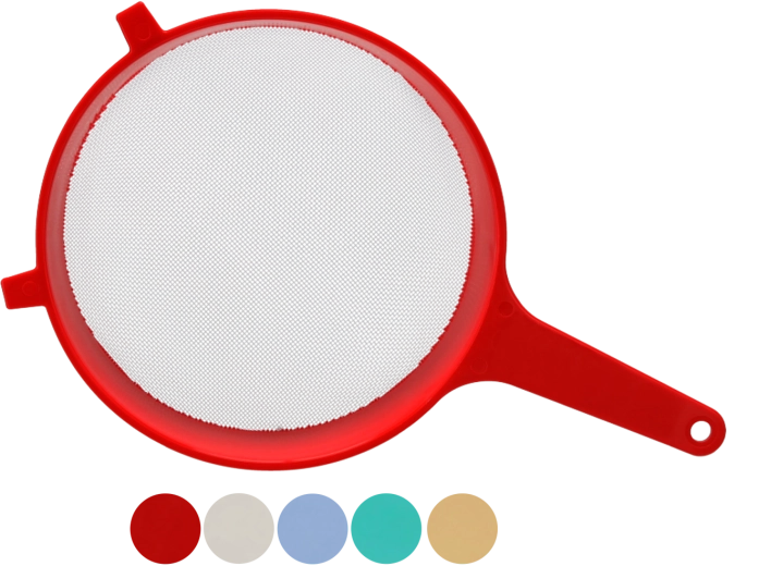 Praktisk køkken-si med en diameter på 25 cm til daglig brug og hjemmelavet drikkevareproduktion. Takket være den dybe konstruktion, det lange håndtag og de sidemonterede kroge kan du nemt og stabilt si frugt, most, urt samt almindelige fødevarer. Det lette og holdbare plastmateriale samt ophængningshullet sikrer nem håndtering og opbevaring.
