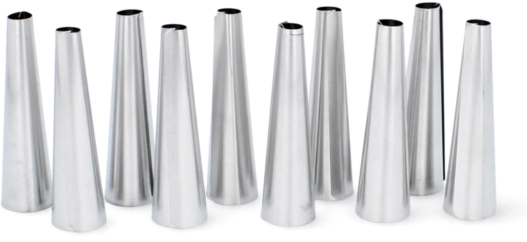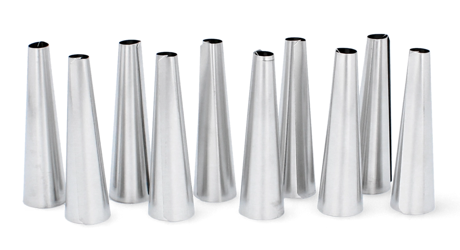 Oplev glæden ved hjemmebag med metalformene til kremrole. Den kegleformede form med en længde på 9 cm sikrer jævn bagning og et perfekt resultat ved fyldning med creme, flødeskum eller salte fyld. Udførelsen i stål garanterer lang levetid og formstabilitet selv ved hyppig brug.