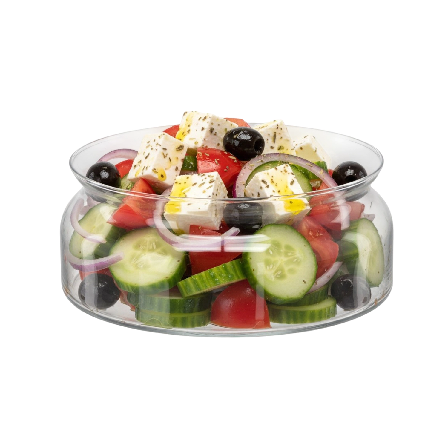 Denne alsidige glasskål passer perfekt i både loft- og klassiske interiører. Det klare, farveløse glas lader indholdet træde frem – uanset om det er salater, frugt, søde sager eller dekorationer. Den moderne, buede form med en let udadbøjet kant giver skålen et tidløst udseende og gør den samtidig nem at håndtere.