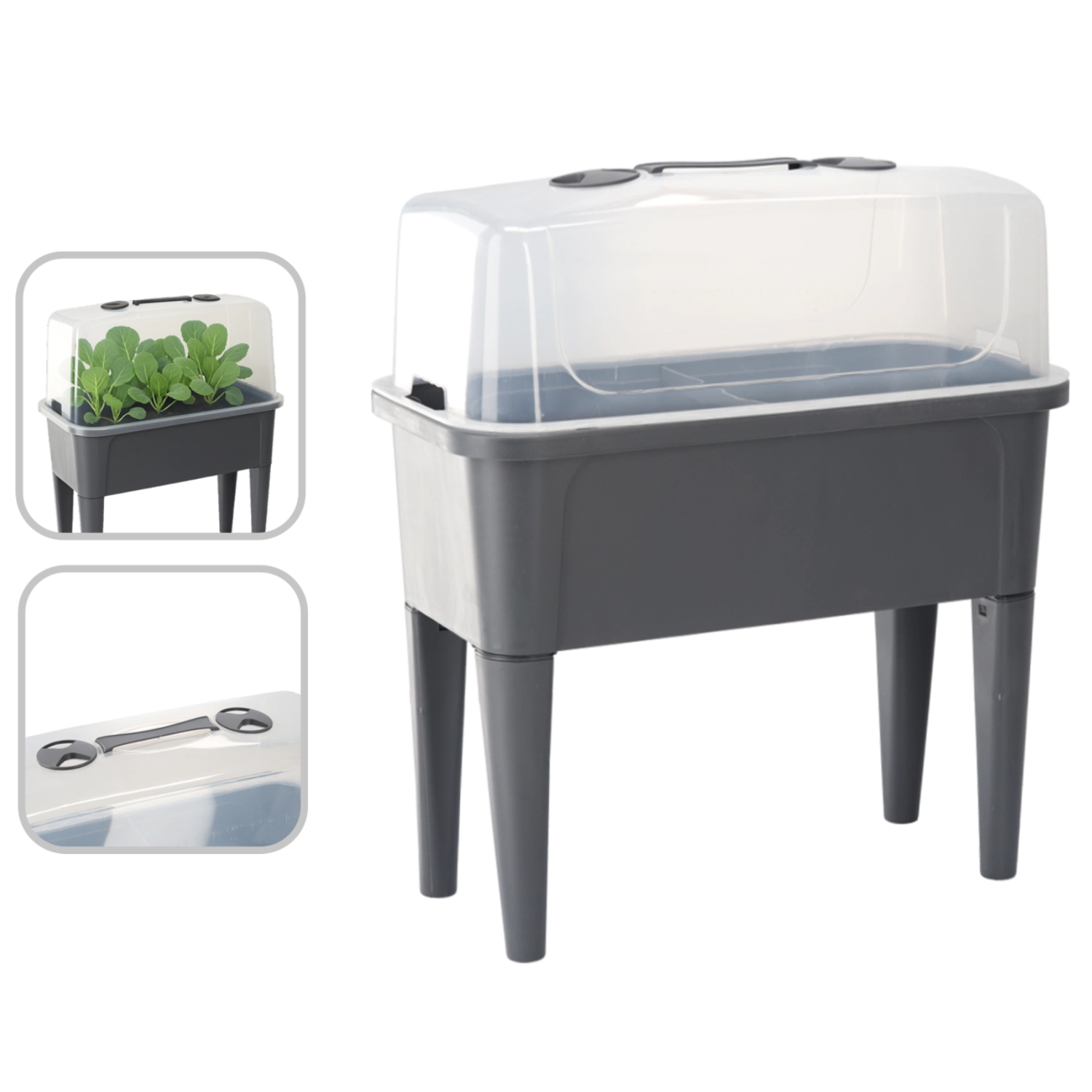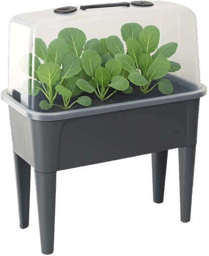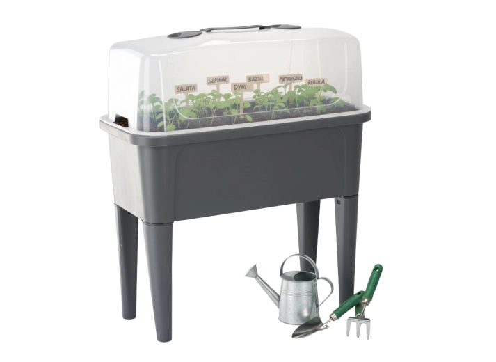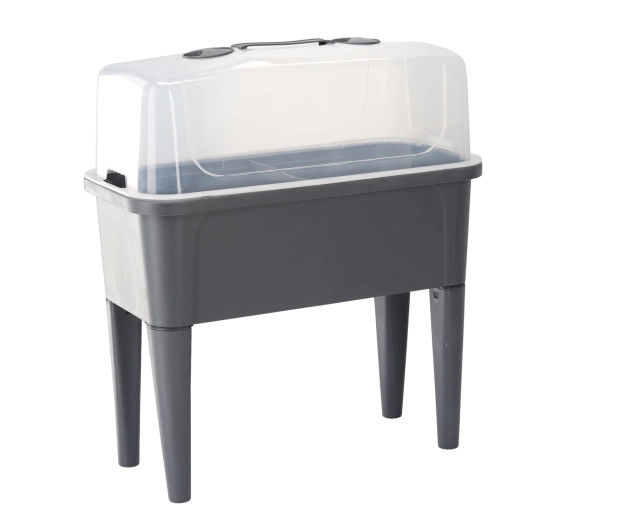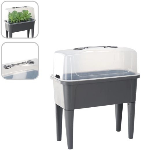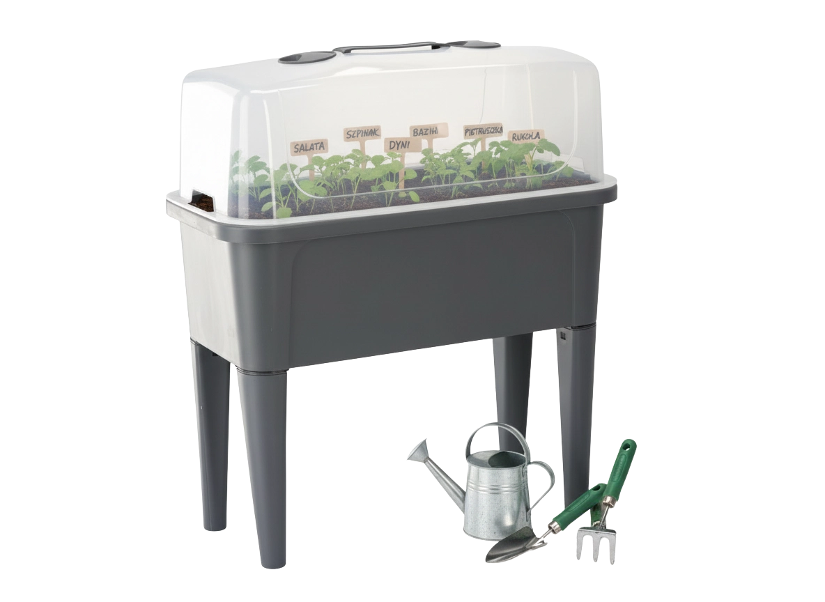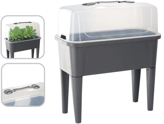 Det praktiske mini-drivhus på ben kombinerer komforten ved et forhøjet bed med effektiv vejrbeskyttelse. Den gennemsigtige kuppel opretholder stabil varme og fugt for en hurtig start på såning, roddannelse af stiklinger og dyrkning af urter. Takket være ventilationsåbningerne i låget har du fuld kontrol over luftcirkulationen.
