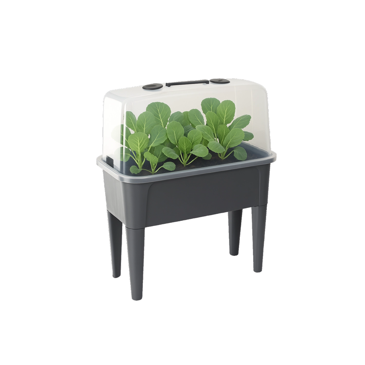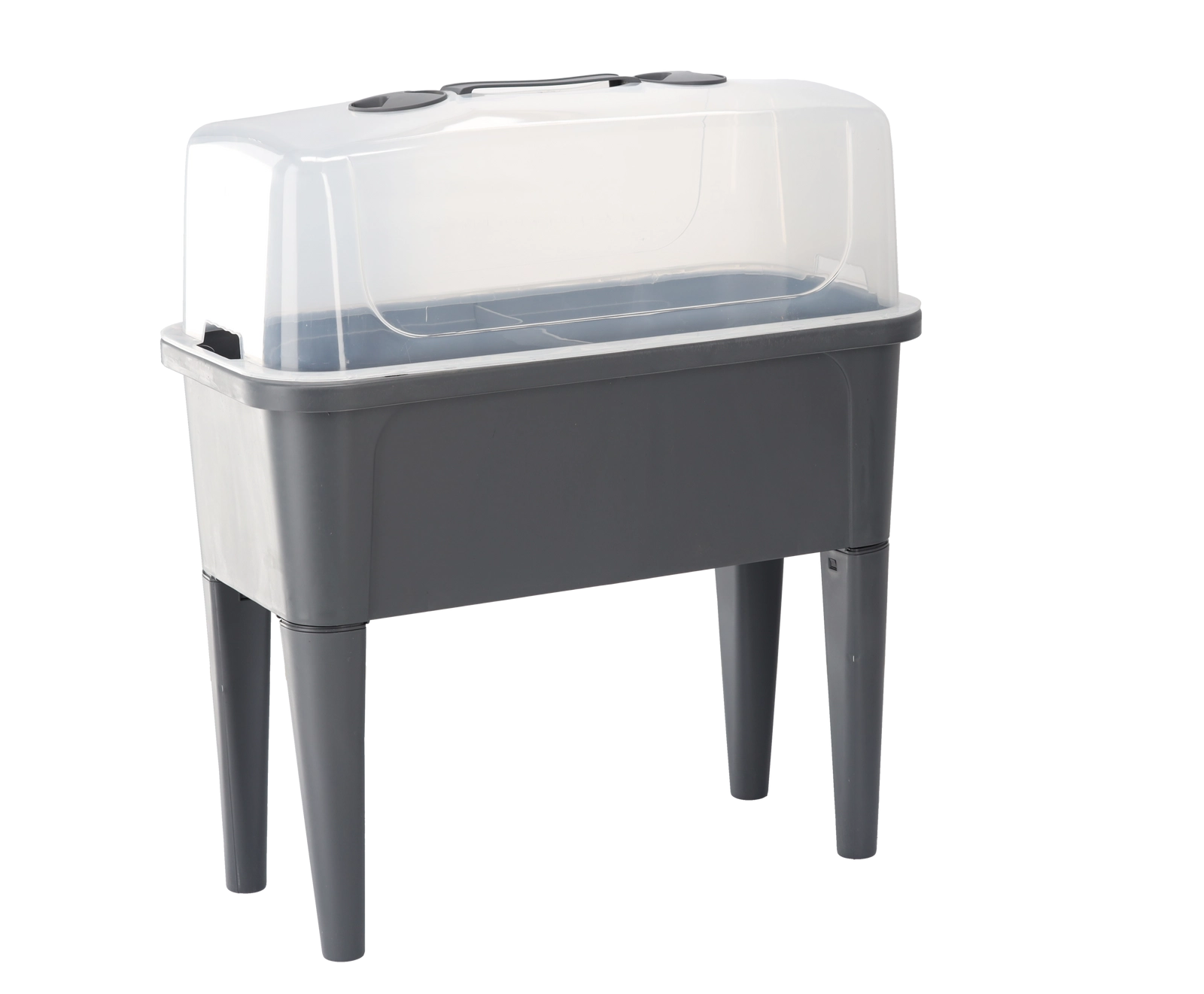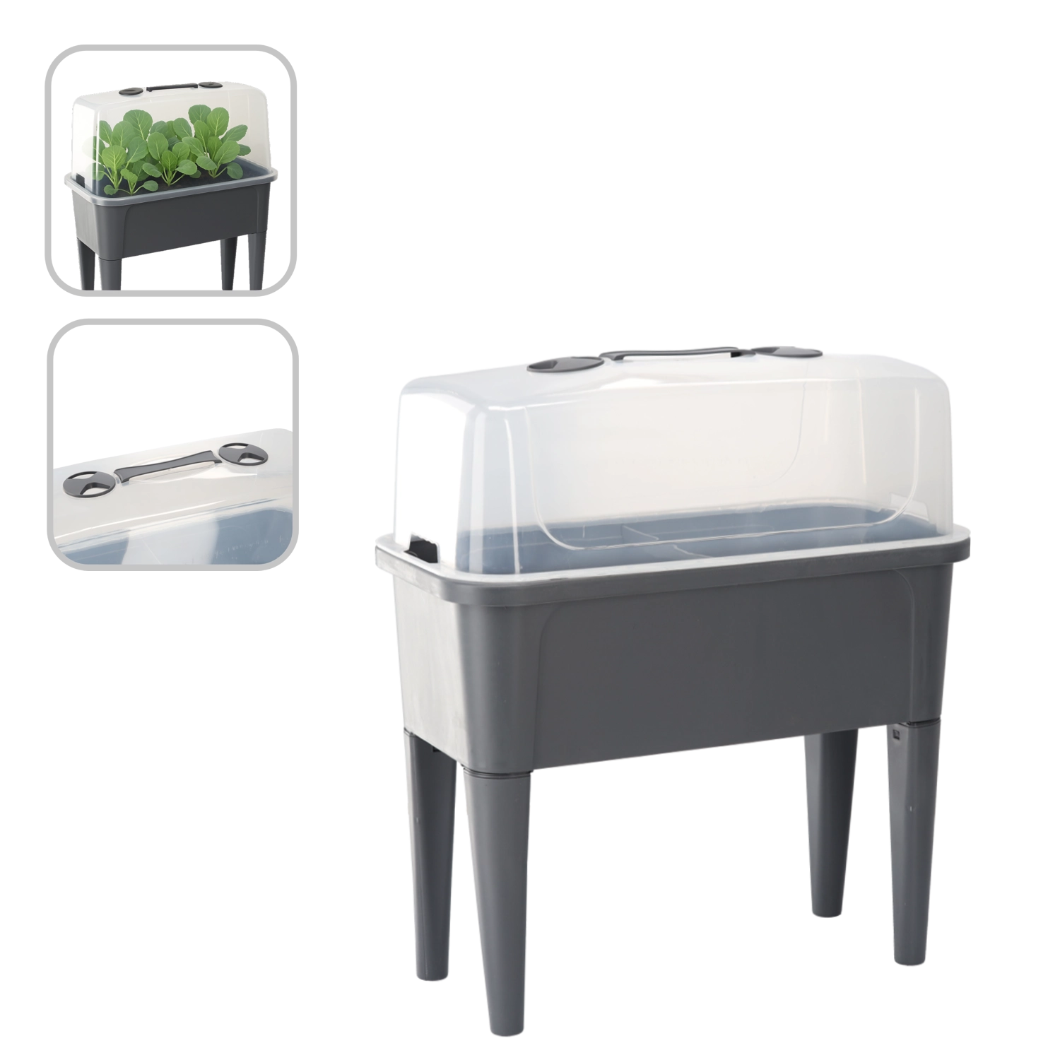 Det praktiske mini-drivhus på ben kombinerer komforten ved et forhøjet bed med effektiv vejrbeskyttelse. Den gennemsigtige kuppel opretholder stabil varme og fugt for en hurtig start på såning, roddannelse af stiklinger og dyrkning af urter. Takket være ventilationsåbningerne i låget har du fuld kontrol over luftcirkulationen.