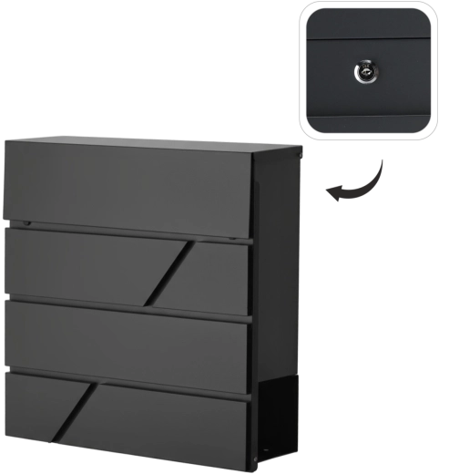 Takket være de kompakte mål 37 × 37 × 10,5 cm og det moderne udseende integreres kassen nemt på facaden af et hus, et lejlighedskompleks eller et kontor. Nem indkastning af post og bekvem adgang fra forsiden gør den let at bruge i hverdagen.