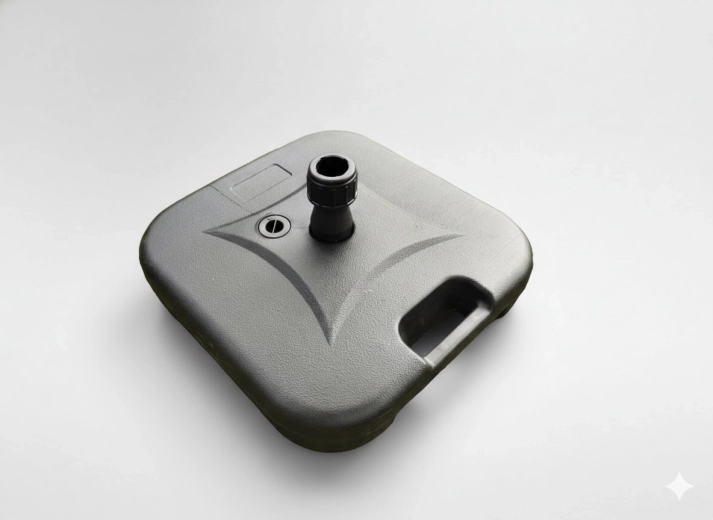 Praktisk og stilfuld base til havesolparasol med mulighed for vandpåfyldning sikrer stabilitet og sikker fastgørelse selv i let vind. Takket være den lave vægt før påfyldning er den nem at flytte, og når den er fyldt, giver den tilstrækkelig vægt til komfortabel brug på terrasse, altan og i haven. Det elegante sorte design passer til både moderne og klassiske udendørsområder.