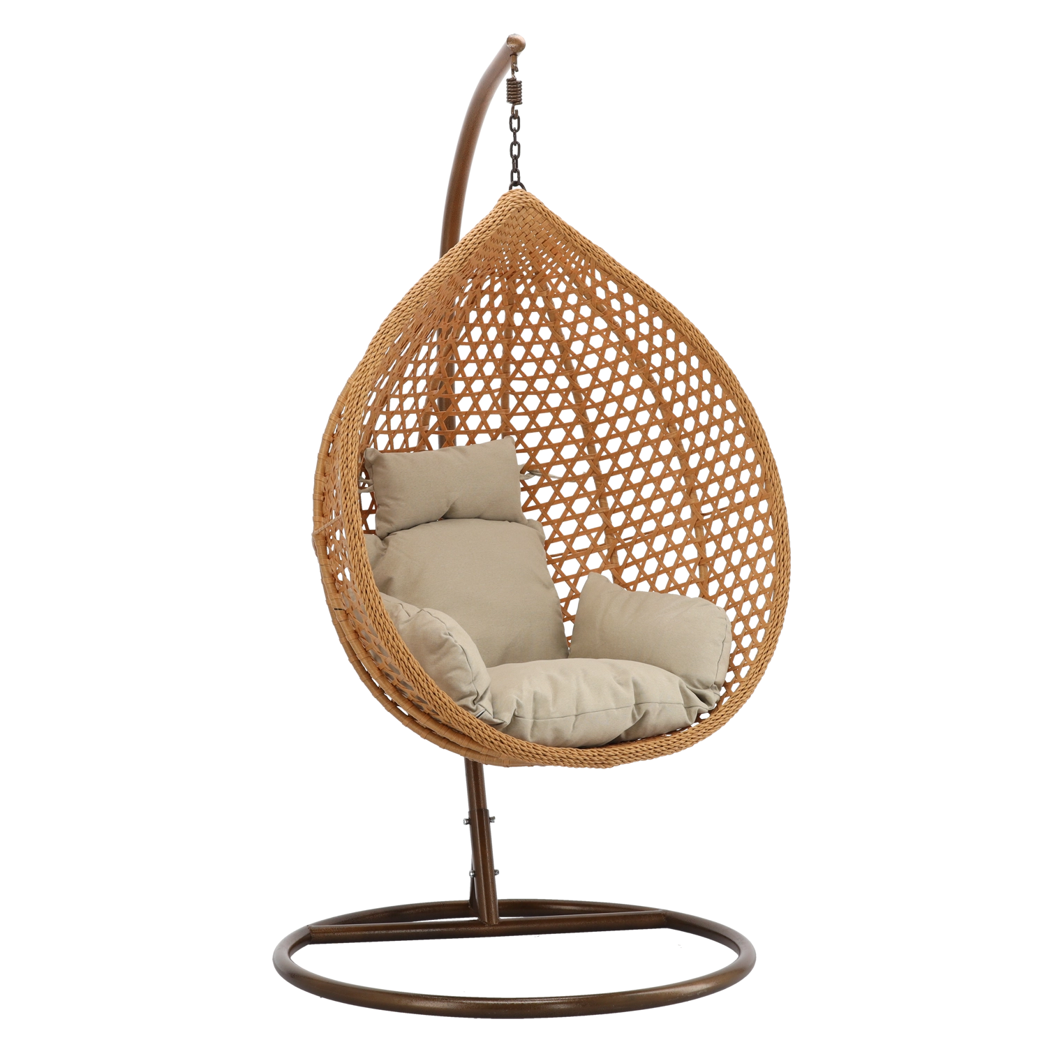 Den robuste metalramme med rund base og ophængskæde sikrer sikker og jævn gyngen både inde og ude.