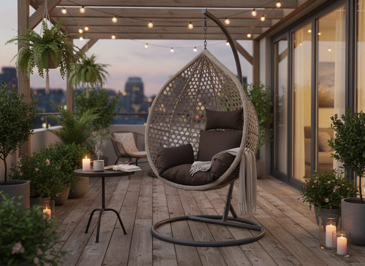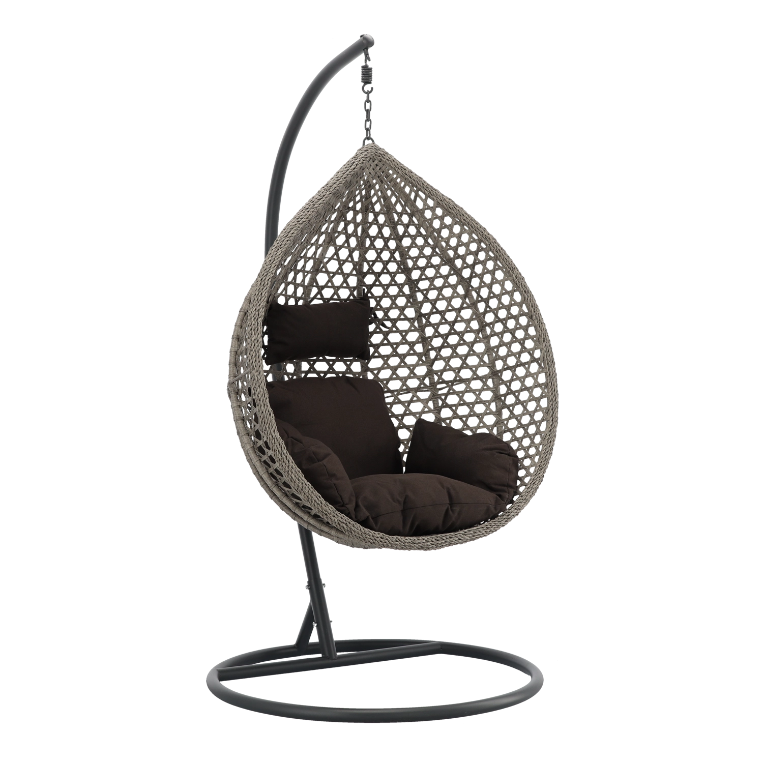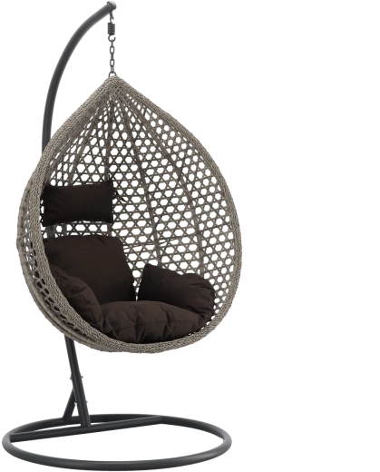 En stilfuld hængestol i ensartet grå farvetone bringer ro og komfort til enhver terrasse, altan og stue. Den robuste mørkegrå ramme sikrer stabilitet og sikker gyngning, mens den rummelige kurv med bløde puder indbyder til afslapning. Takket være det tidløse design og de holdbare materialer er den ideel til relaks og daglig brug både inde og ude.