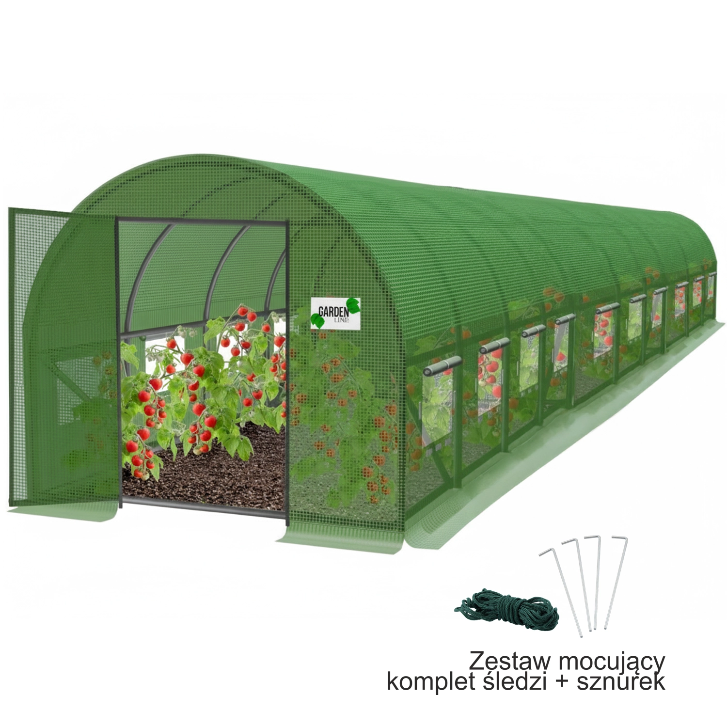 Jordkant til nedgravning øger stabiliteten mod vind. Inkluderer pløkker til forankring og ekstra stænger til klatreplanter (tomater, agurker, ærter) for nem opbinding og højere udbytte.