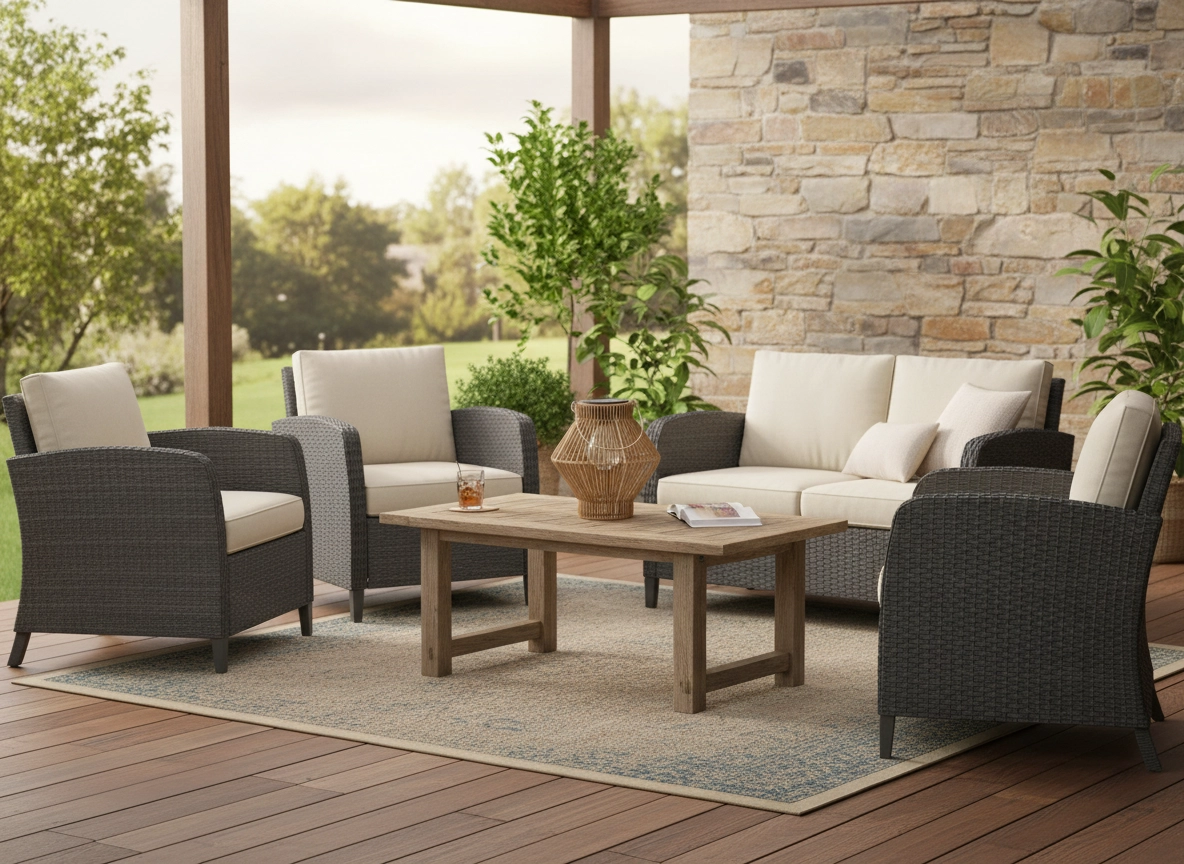 Det afdæmpede brune look harmonerer med naturlige materialer og passer nemt ind i både rustikke og moderne udendørsområder.