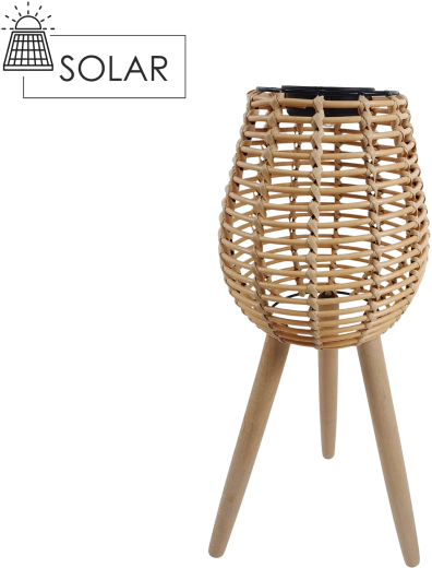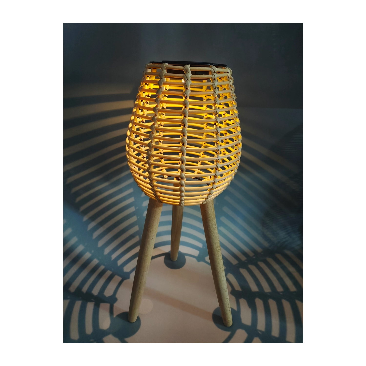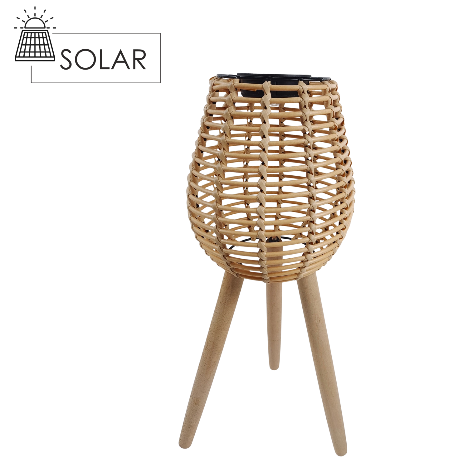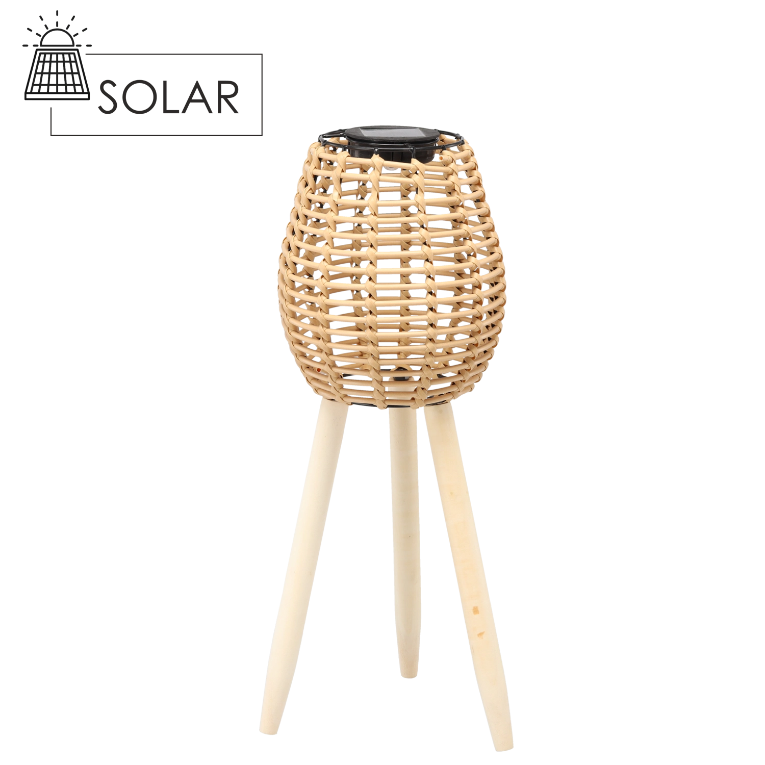 solcelledrevet lanterne i rattanlook på træben 52 cm LED