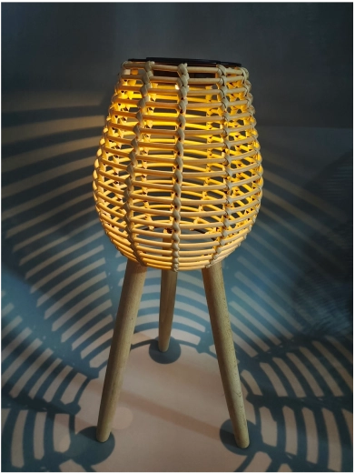 Den solcelledrevne lanterne med en højde på 52 cm imponerer med sin naturlige æstetik og stabile trefod. Polykristallinsk solpanel oplader akkumulatoren i løbet af dagen, og efter mørkets frembrud tændes den energibesparende LED, som skaber et blødt, dekorativt lys til afslapning eller hyggestunder med venner.