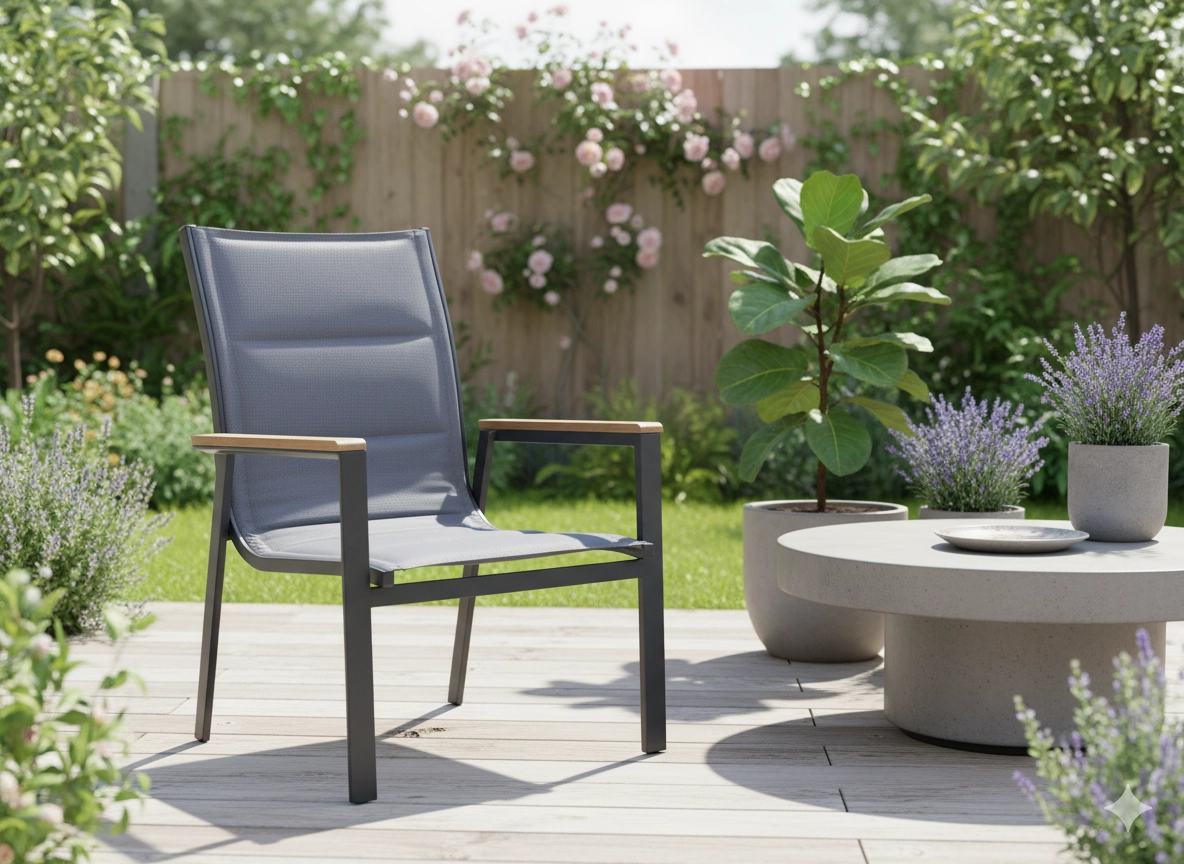 Aluminiumskonstruktionen med pulverlakering modstår korrosion og vejr, samtidig med at den er let at flytte og stabil selv på udendørs underlag.