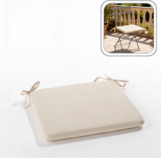 Den neutrale beige farve og et materiale med sprøjtbestandighed passer perfekt til spisebordsstole og havemøbler.