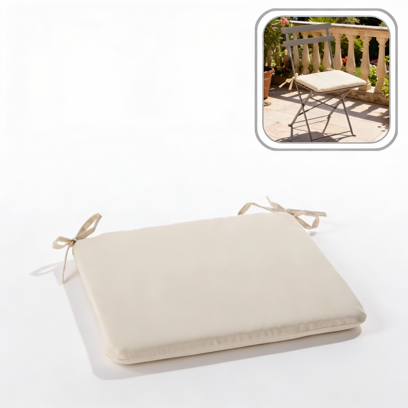 Integrerede bindesnore holder sædepuden sikkert på plads, og lynlåslukning gør rengøringen lettere. Takket være den tidløse farve kan sædepuden nemt matches med de fleste interiører og havemøbler.