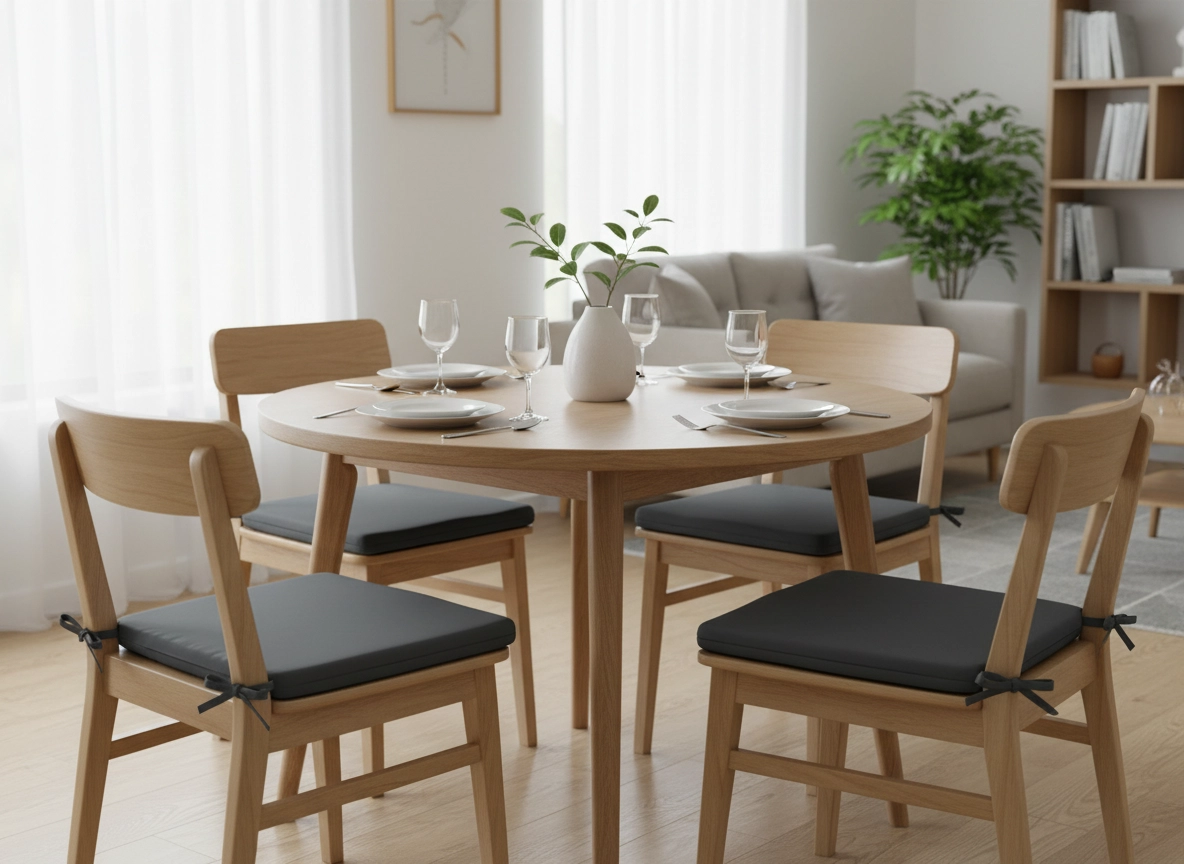 Det aftagelige betræk med lynlås gør vedligeholdelsen let – tag det blot af og vask det. Hjørnesnore holder puden sikkert på plads, så den ikke glider. Overfladestoffet er modstandsdygtigt over for lette stænk, hvilket er praktisk i køkkenet og i haven.