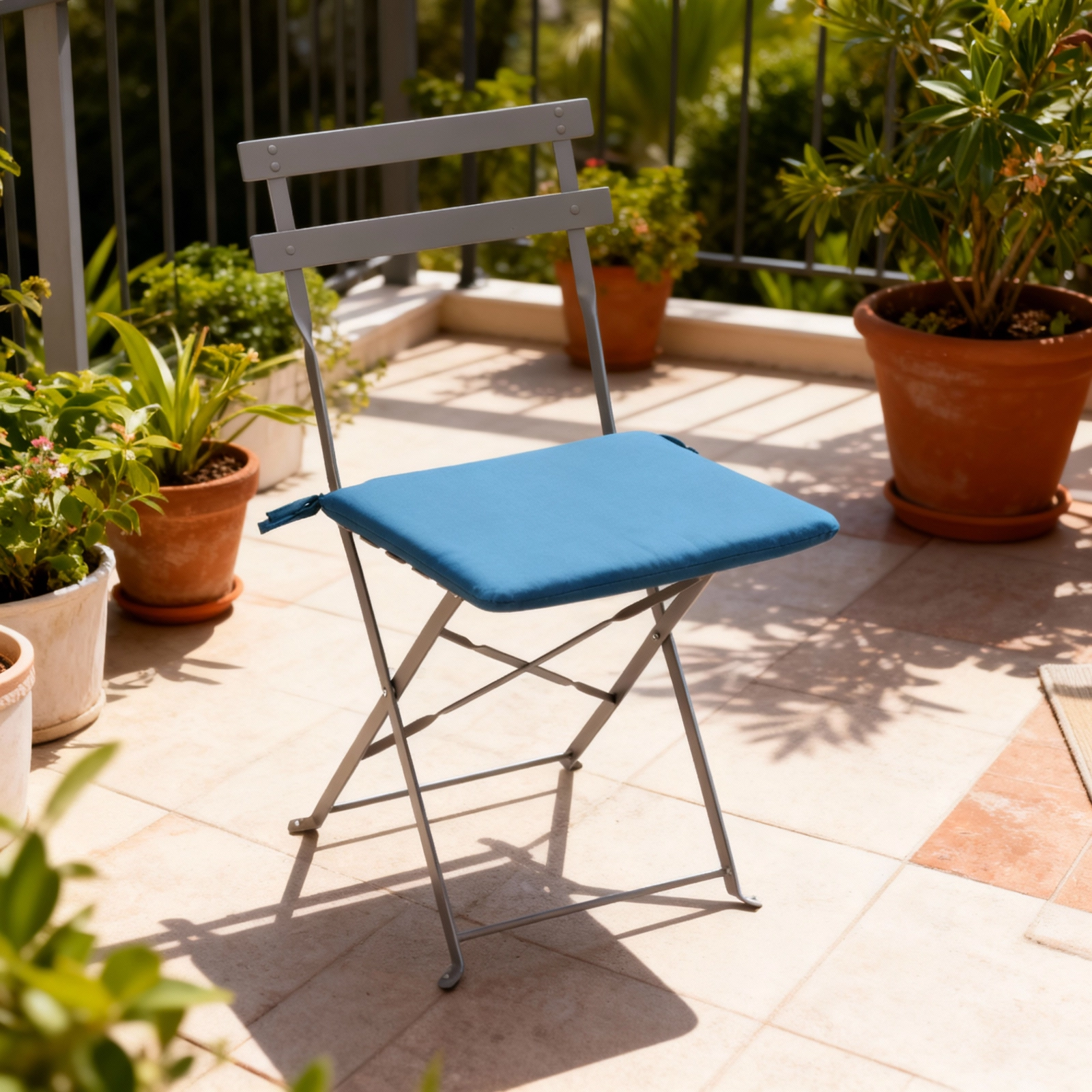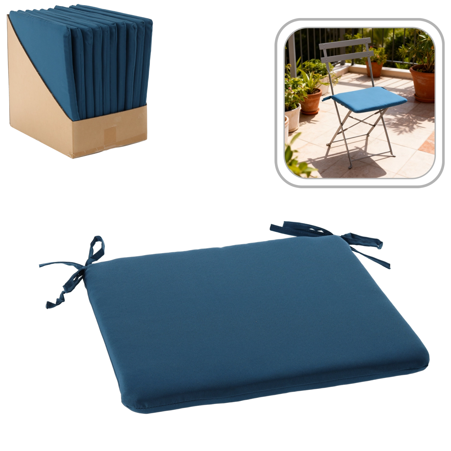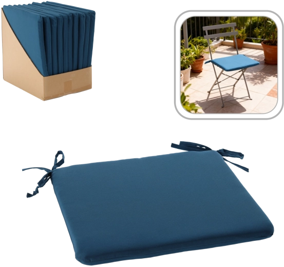 Den blå stolehynde er et ideelt valg til både indendørs og overdækket udendørs brug. Takket være det holdbare polyesterbetræk og den nemme vedligeholdelse får du komfort hver dag. Integrerede bindebånd til fastgørelse forhindrer, at hynden glider, så den bliver præcis, hvor den skal.