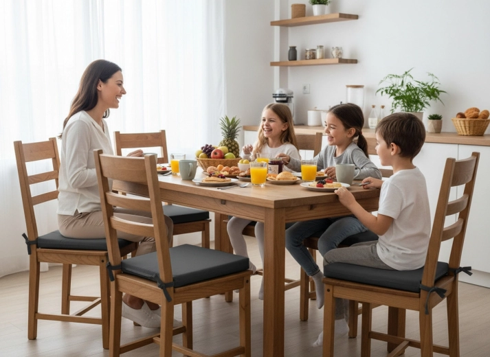 Blød polyesterfiber sikrer behagelig siddekomfort ved både måltider og arbejde. Ideel til daglig brug.