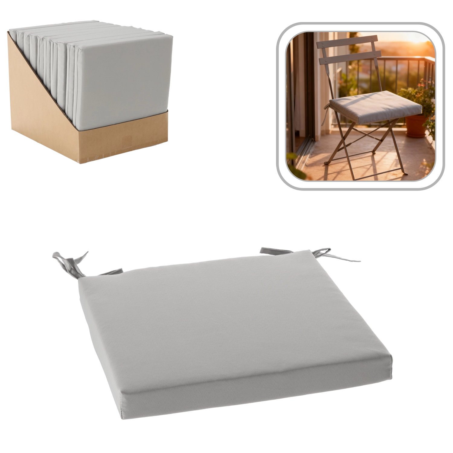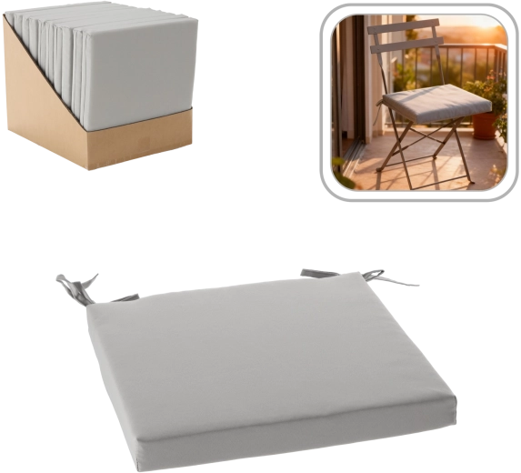 Opgrader dine stole med en elegant hynde på 40 × 40 × 5 cm i lysegrå. Takket være den bløde polstring får du langvarig komfort, mens det vandafvisende betræk i 100% polyester gør vedligeholdelsen let i køkken, spisestue og på altan.